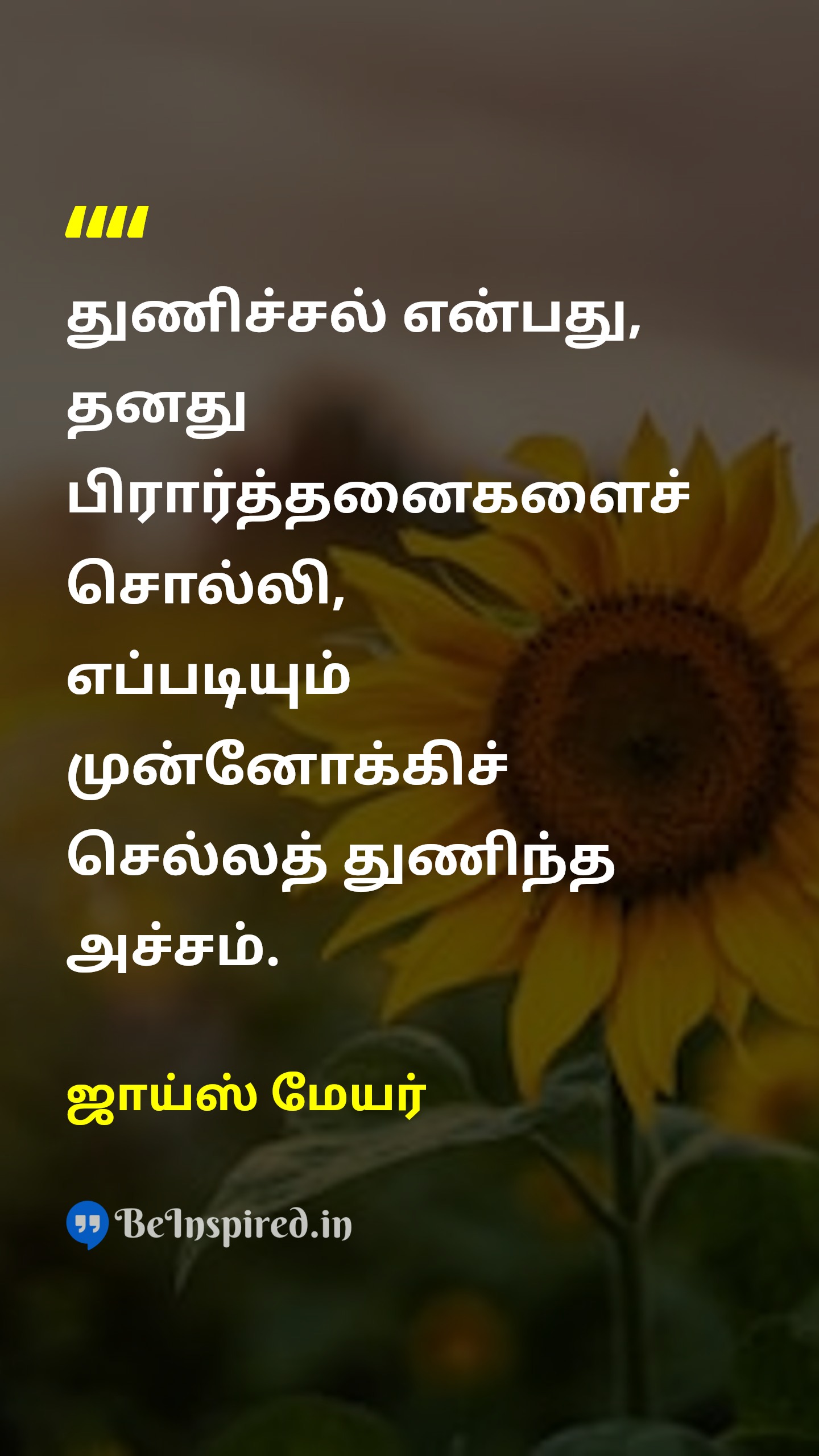 அச்சமின்மை அன்று துணிவு; அச்சத்தை வெல்வதே துணிவு என உணர்ந்தேன். பயப்படாதவன் வீரன் அல்ல, பயத்தை வென்றவனே வீரன்.