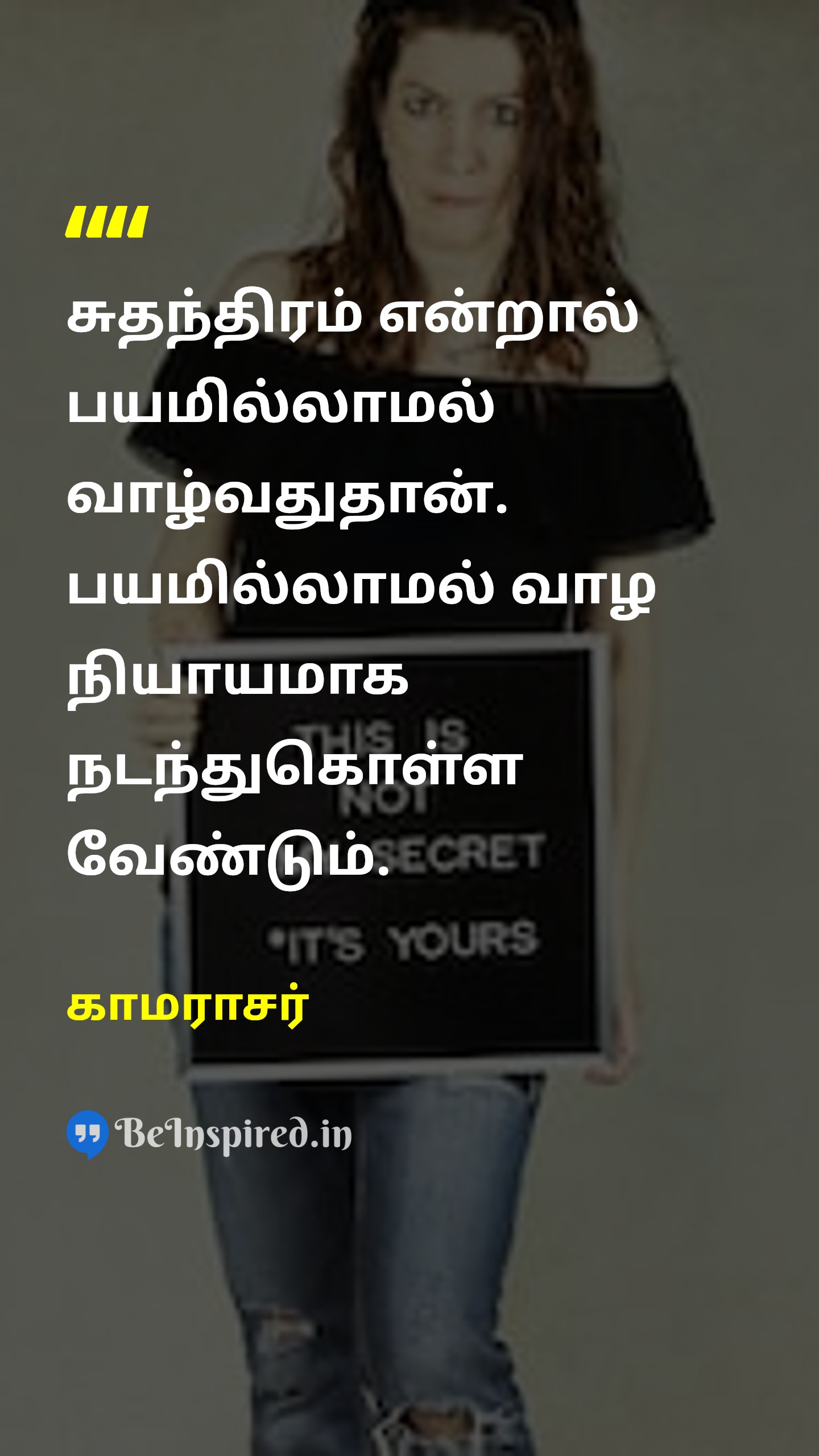 சுதந்திரம் என்றால் பயமில்லாமல் வாழ்வதுதான். பயமில்லாமல் வாழ நியாயமாக நடந்துகொள்ள வேண்டும்.