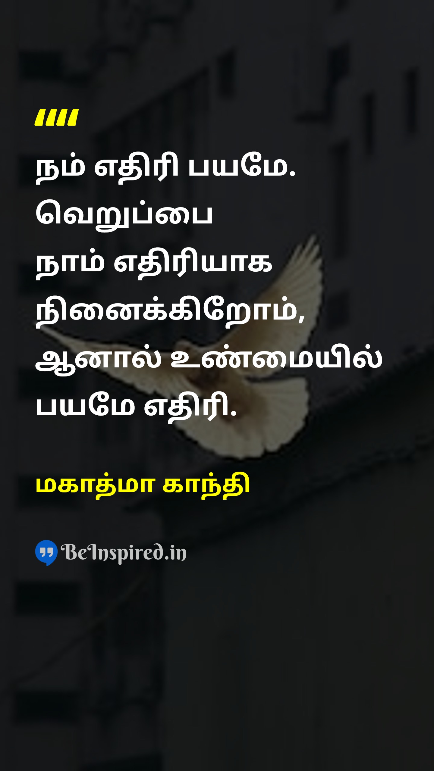 நம் எதிரி பயமே. வெறுப்பை நாம் எதிரியாக நினைக்கிறோம், ஆனால் உண்மையில் பயமே எதிரி.