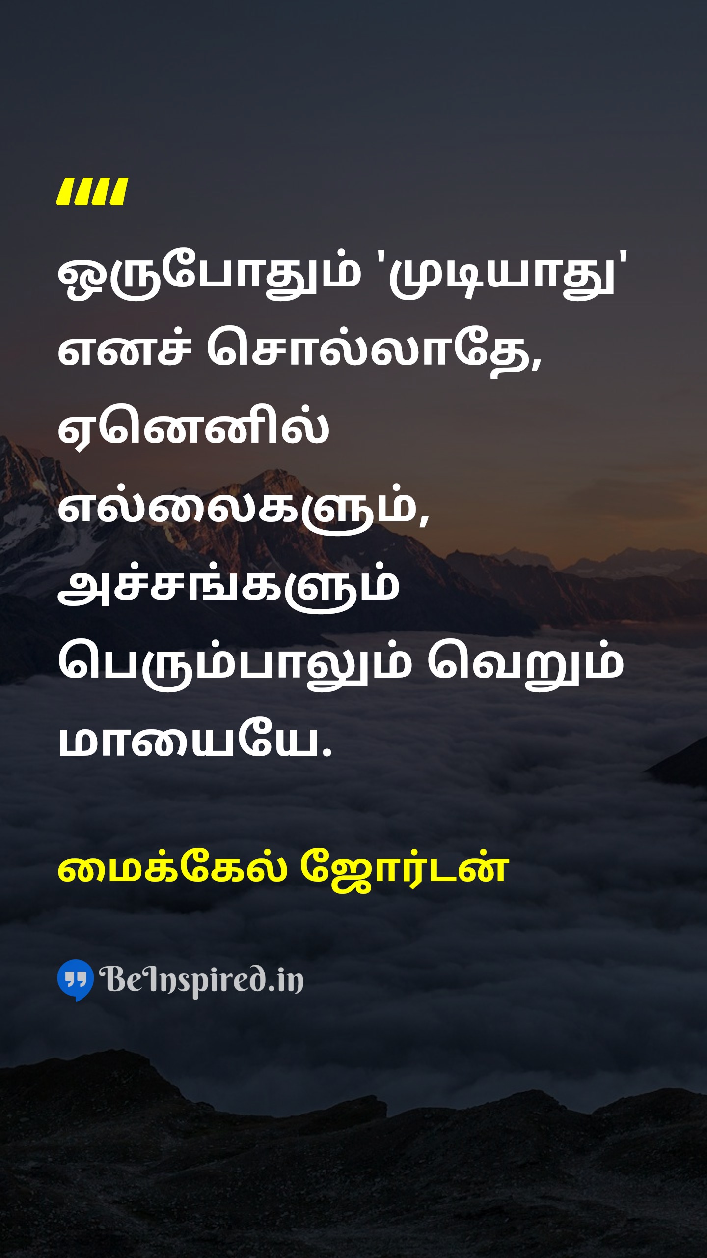 ஒருபோதும் 'முடியாது' எனச் சொல்லாதே, ஏனெனில் எல்லைகளும், அச்சங்களும் பெரும்பாலும் வெறும் மாயையே.