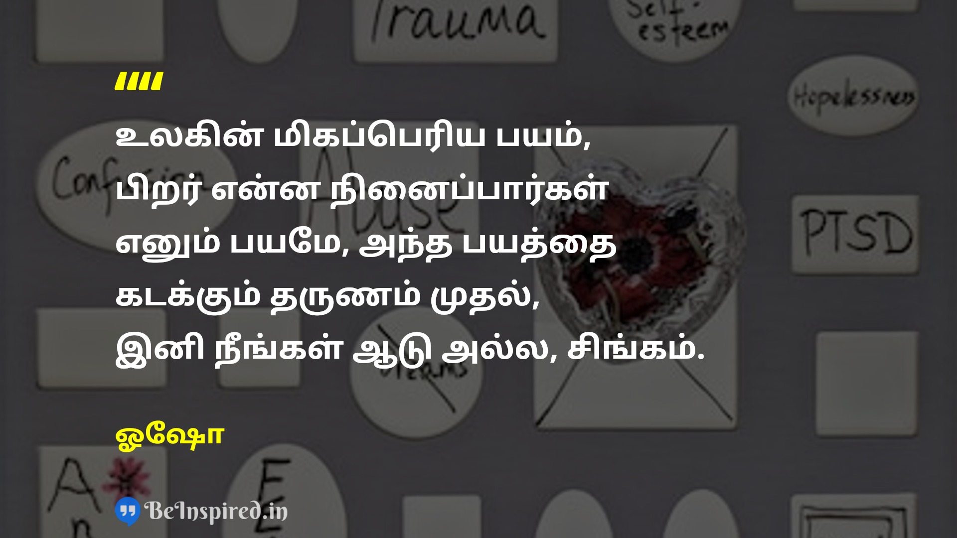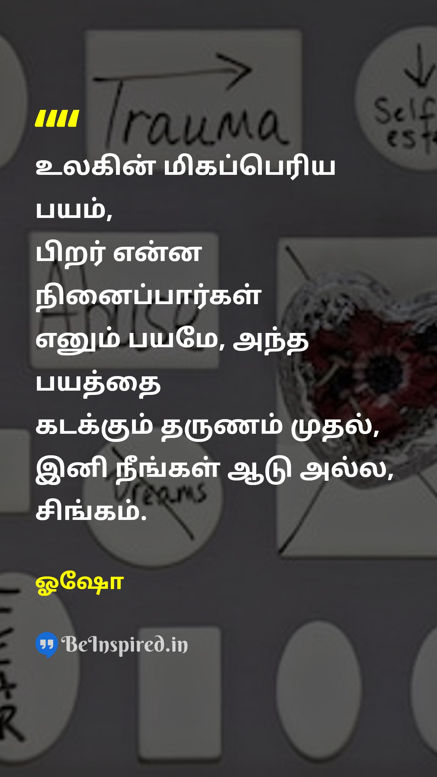 உலகின் மிகப்பெரிய பயம், பிறர் என்ன நினைப்பார்கள் எனும் பயமே, அந்த பயத்தை கடக்கும் தருணம் முதல், இனி நீங்கள் ஆடு அல்ல, சிங்கம்.