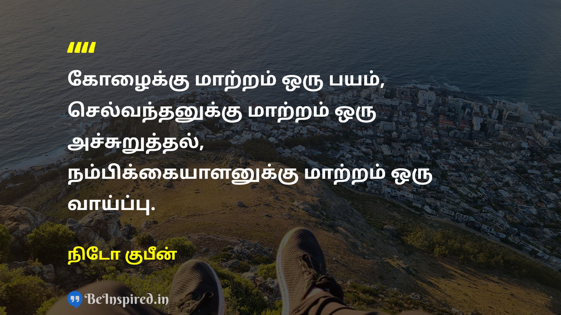 கோழைக்கு மாற்றம் ஒரு பயம், செல்வந்தனுக்கு மாற்றம் ஒரு அச்சுறுத்தல், நம்பிக்கையாளனுக்கு மாற்றம் ஒரு வாய்ப்பு.