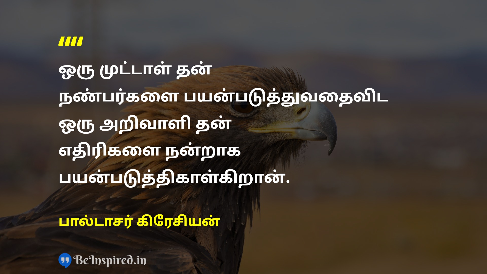 ஒரு முட்டாள் தன் நண்பர்களை பயன்படுத்துவதைவிட ஒரு அறிவாளி தன் எதிரிகளை நன்றாக பயன்படுத்திகாள்கிறான்.