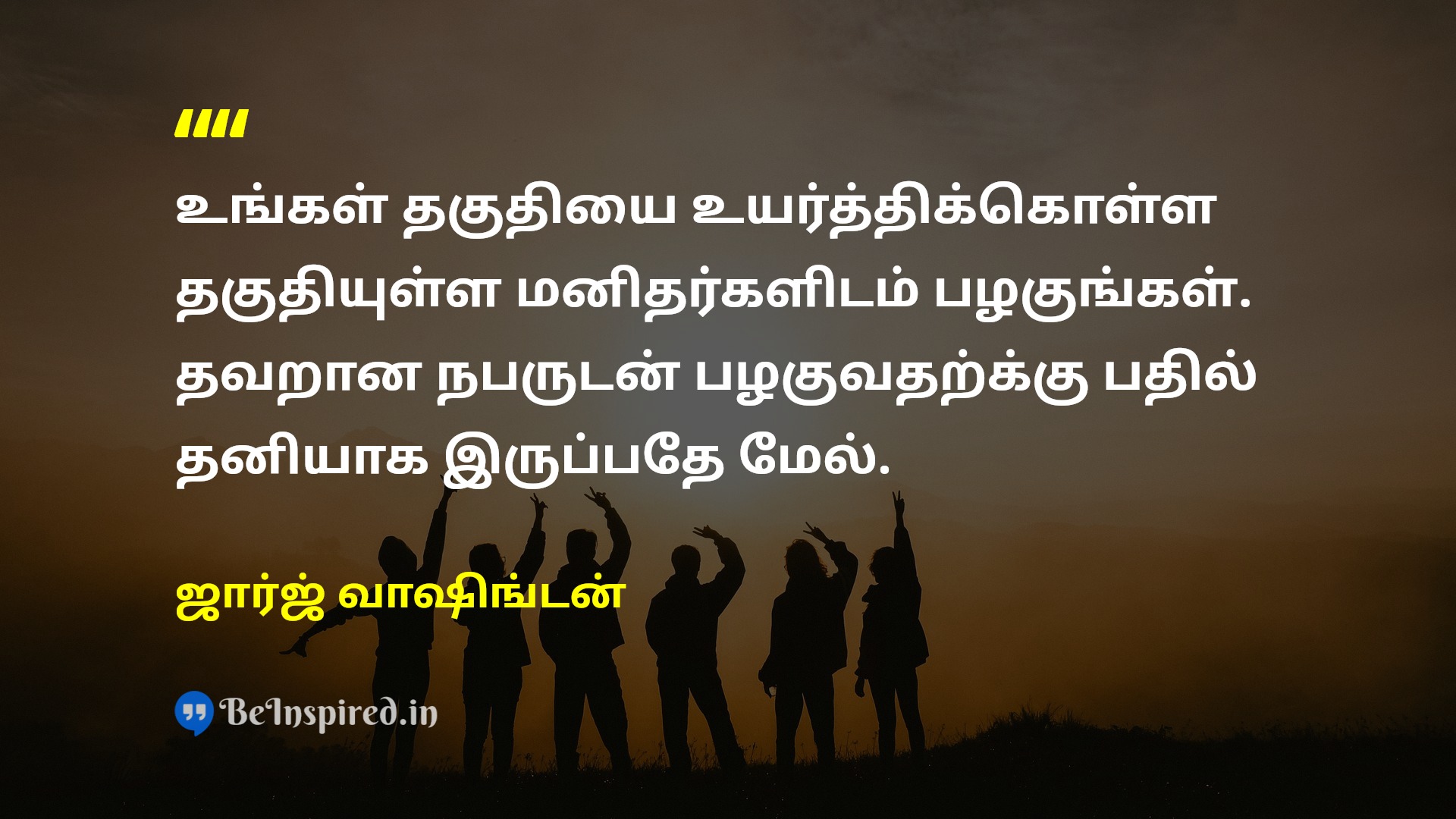 உங்கள் தகுதியை உயர்த்திக்கொள்ள தகுதியுள்ள மனிதர்களிடம் பழகுங்கள். தவறான நபருடன் பழகுவதற்க்கு பதில் தனியாக இருப்பதே மேல்.