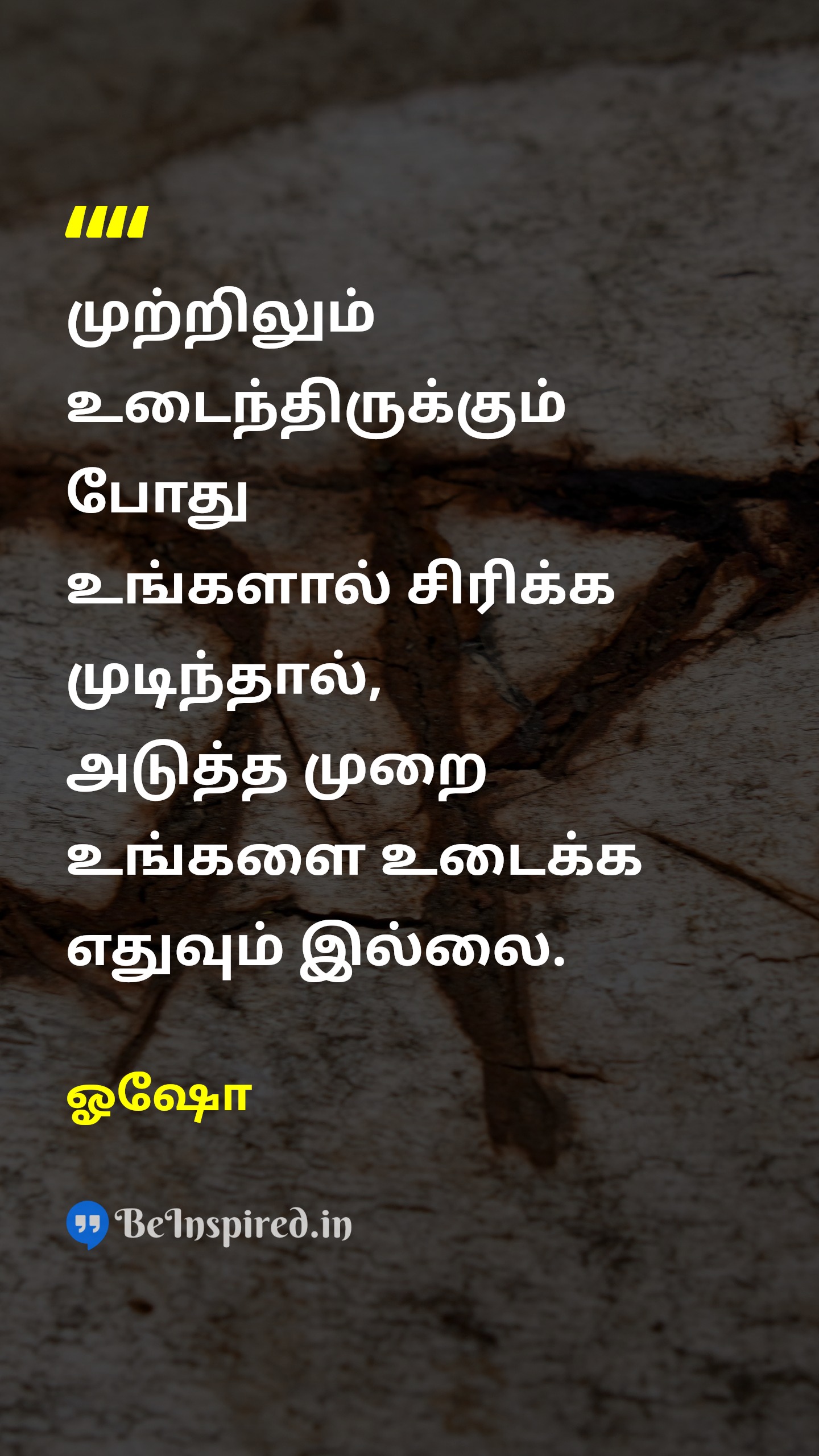 முற்றிலும் உடைந்திருக்கும் போது உங்களால் சிரிக்க முடிந்தால், அடுத்த முறை உங்களை உடைக்க எதுவும் இல்லை.