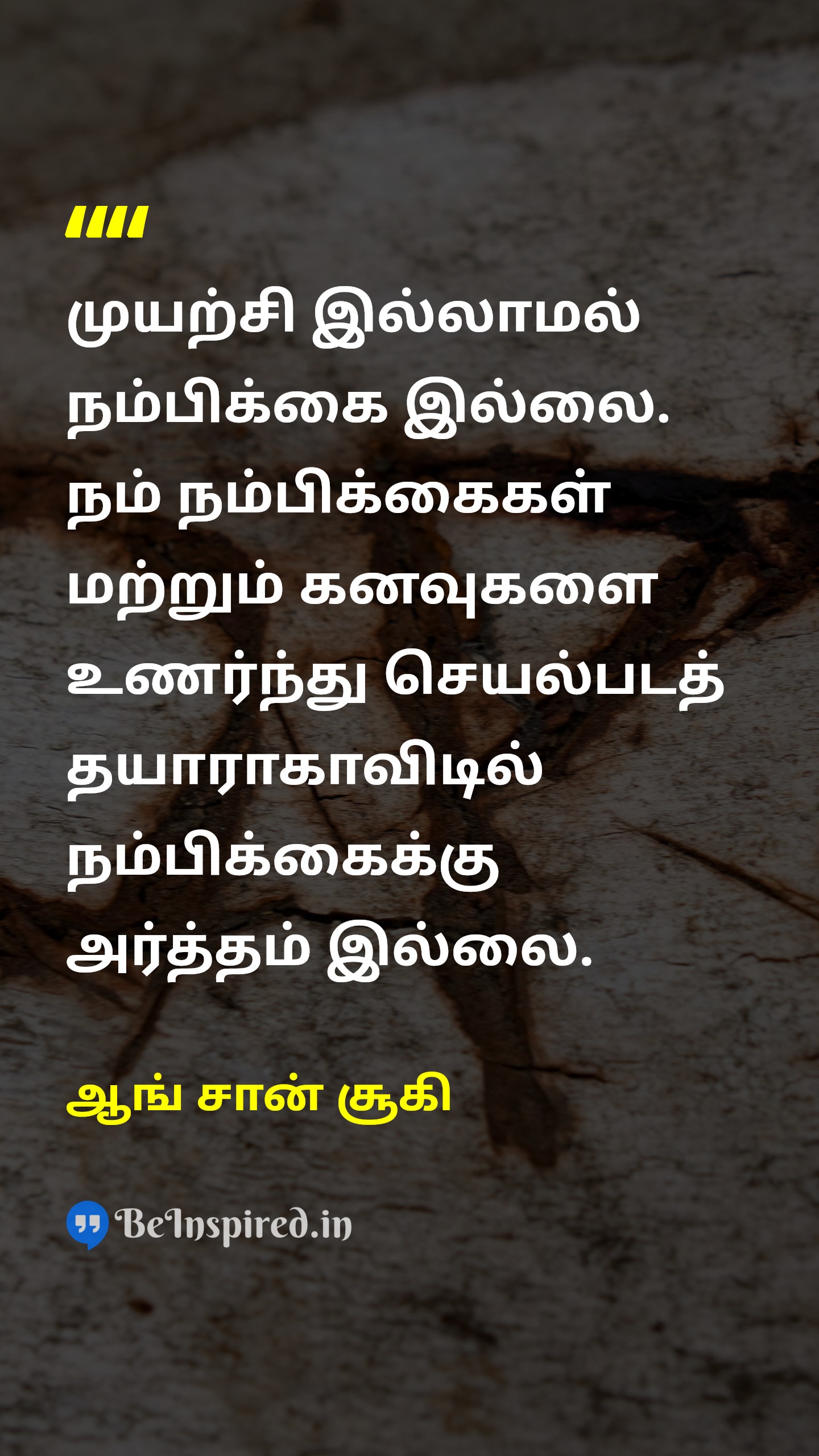 முயற்சி இல்லாமல் நம்பிக்கை இல்லை. நம் நம்பிக்கைகள் மற்றும் கனவுகளை உணர்ந்து செயல்படத் தயாராகாவிடில் நம்பிக்கைக்கு அர்த்தம் இல்லை.