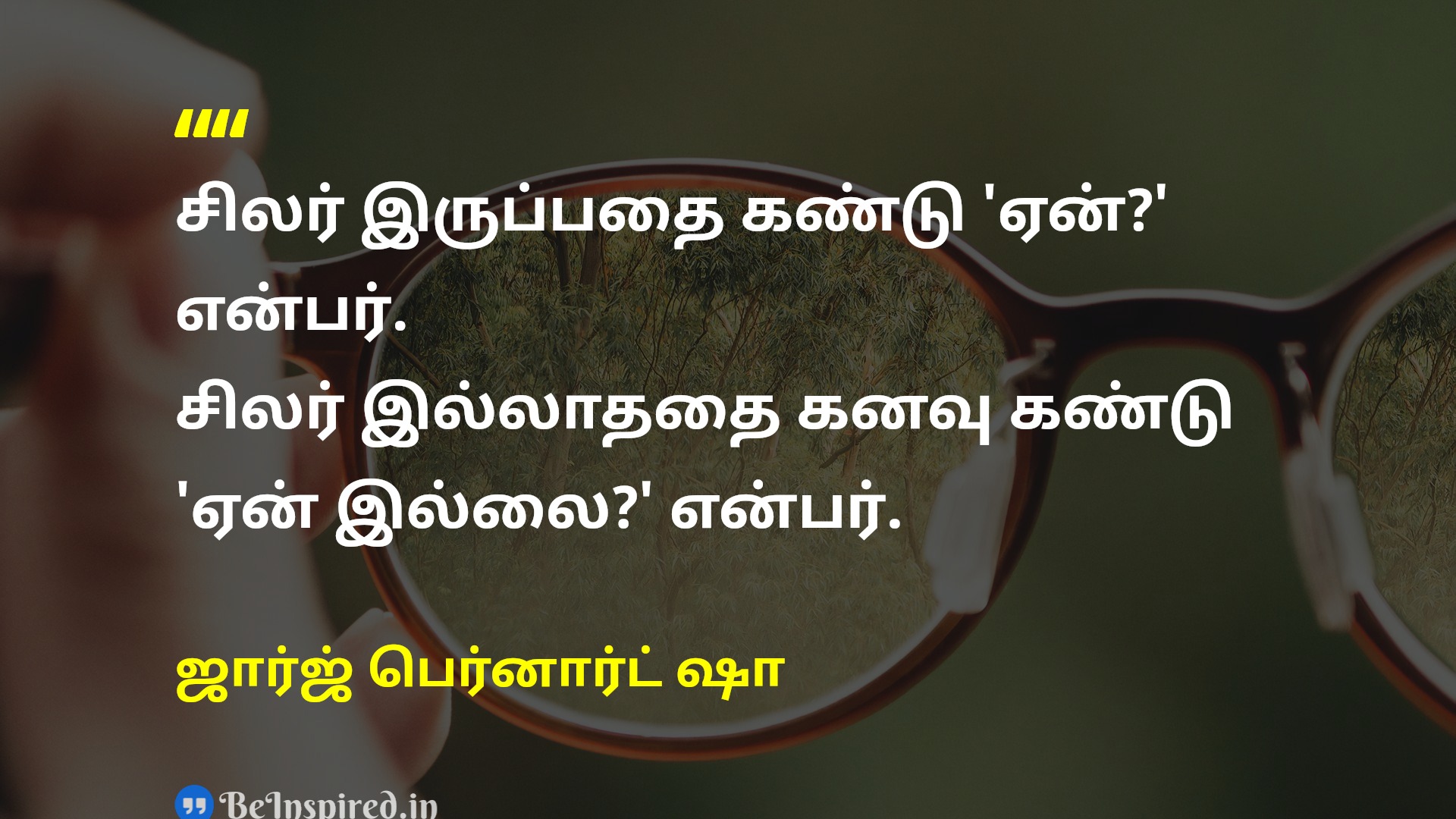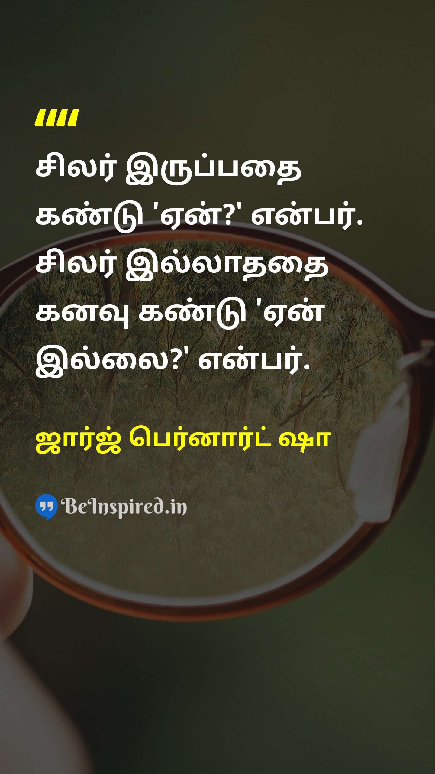 சிலர் இருப்பதை கண்டு 'ஏன்?' என்பர். சிலர் இல்லாததை கனவு கண்டு 'ஏன் இல்லை?' என்பர்.