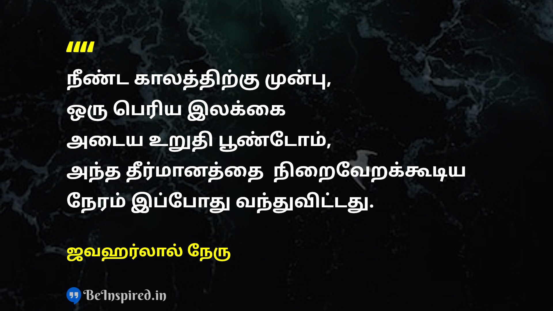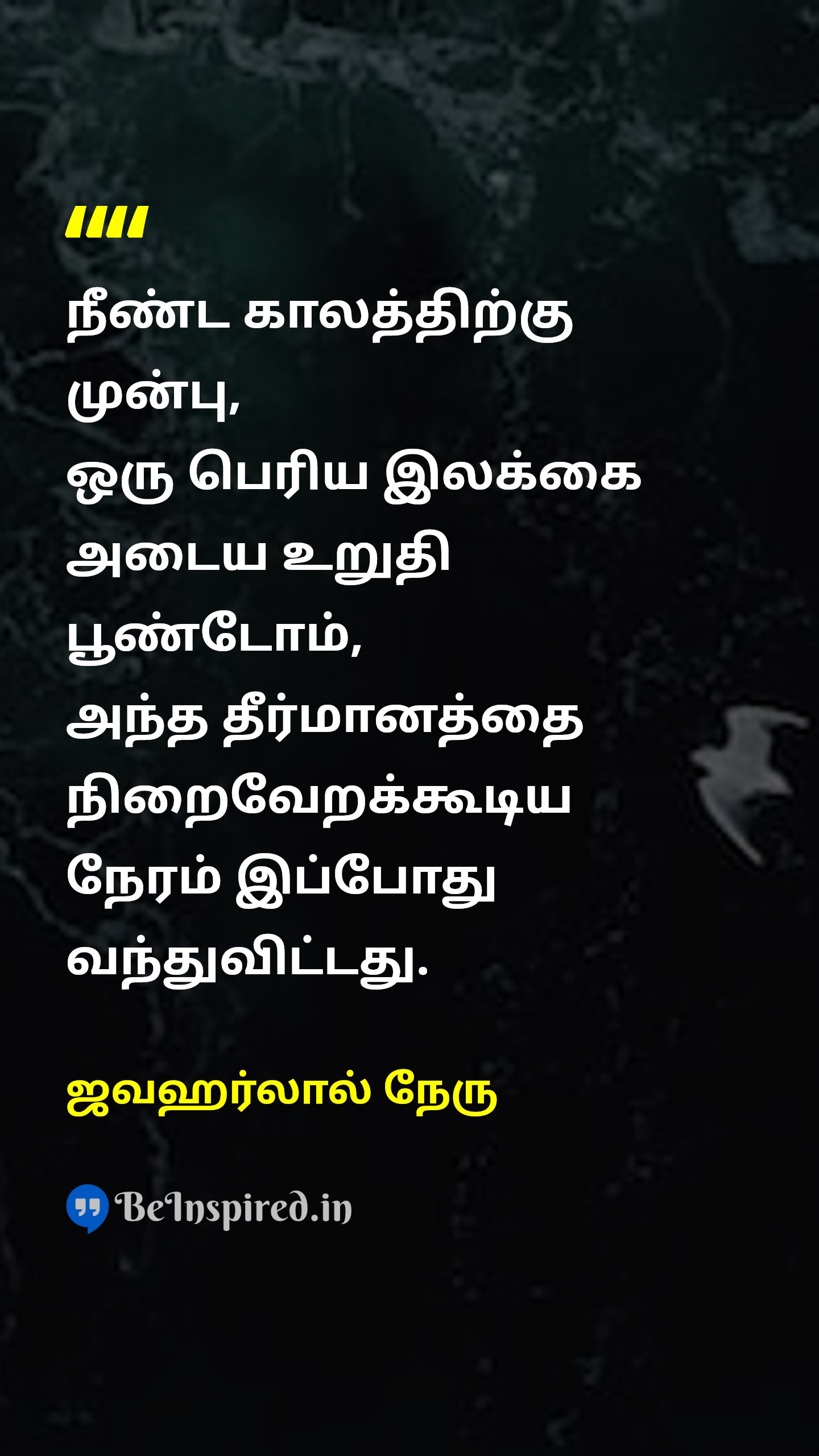 நீண்ட காலத்திற்கு முன்பு, ஒரு பெரிய இலக்கை அடைய உறுதி பூண்டோம், அந்த தீர்மானத்தை நிறைவேறக்கூடிய நேரம் இப்போது வந்துவிட்டது.