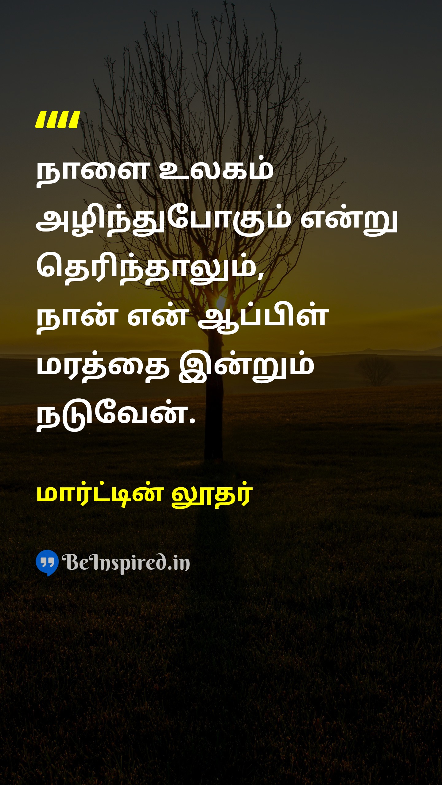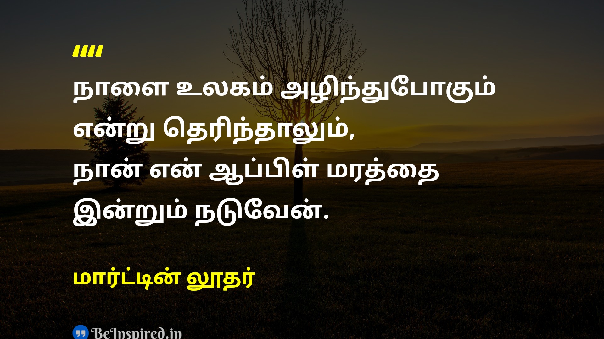 நாளை உலகம் அழிந்துபோகும் என்று தெரிந்தாலும், நான் என் ஆப்பிள் மரத்தை இன்றும் நடுவேன்.