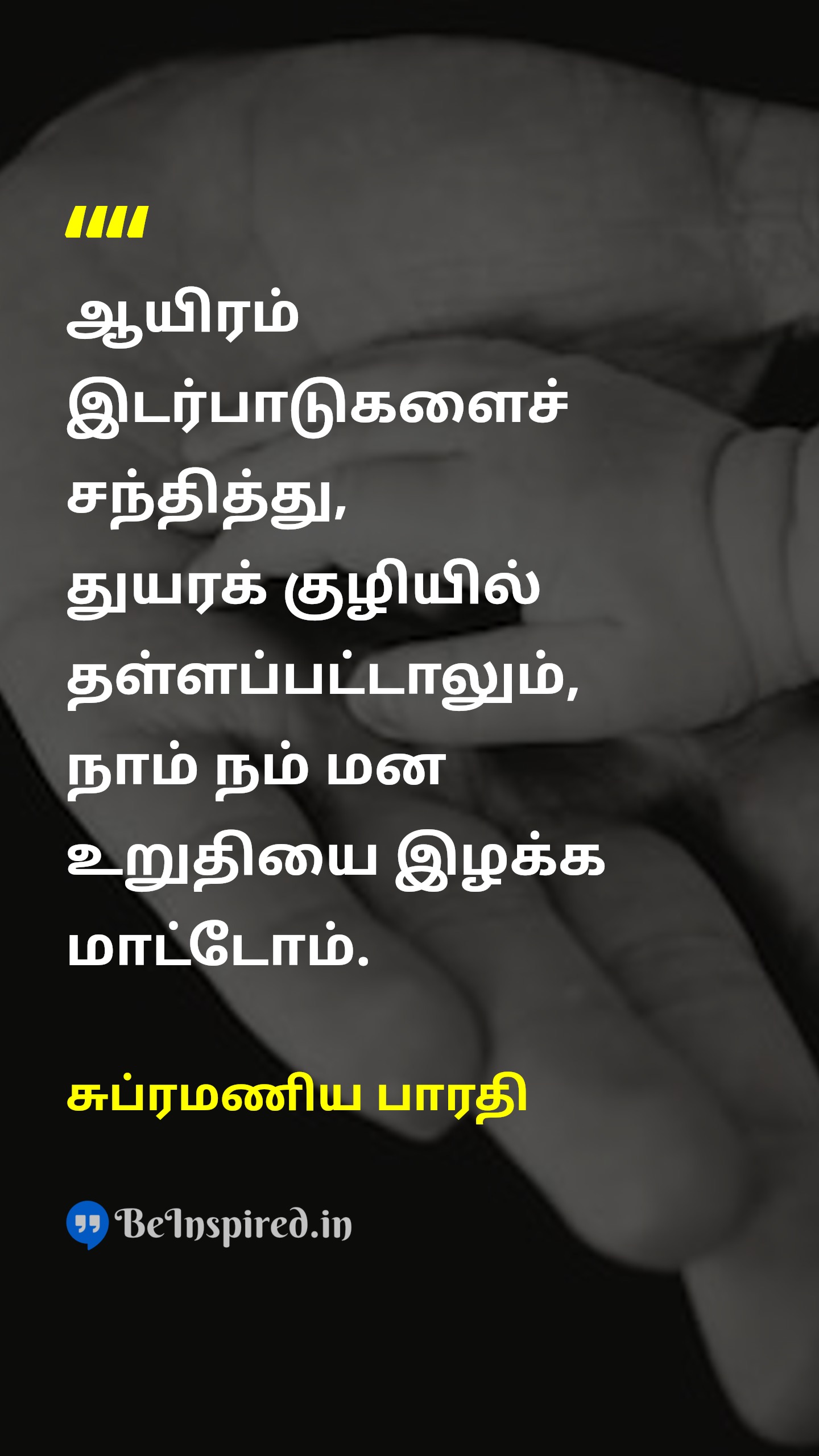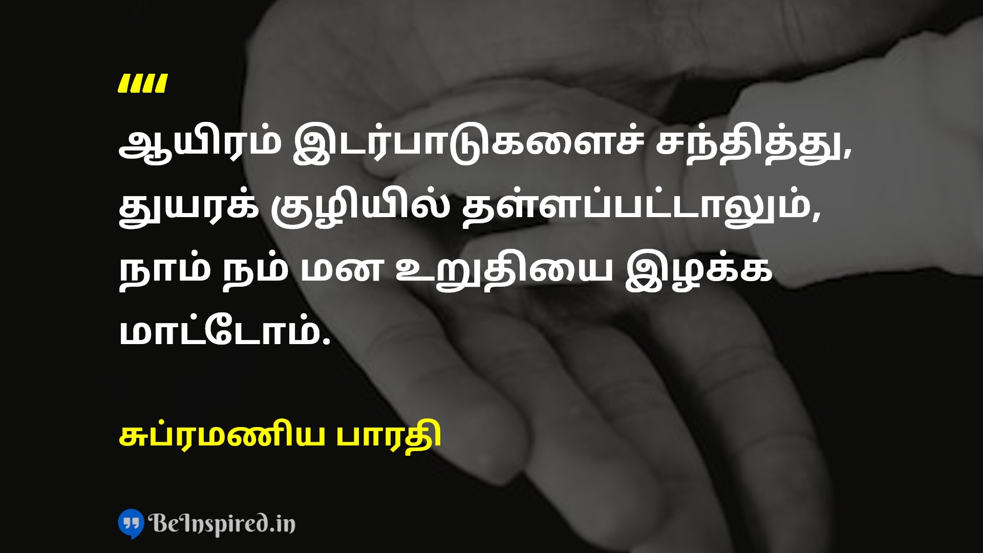 ஆயிரம் இடர்பாடுகளைச் சந்தித்து, துயரக் குழியில் தள்ளப்பட்டாலும், நாம் நம் மன உறுதியை இழக்க மாட்டோம்.