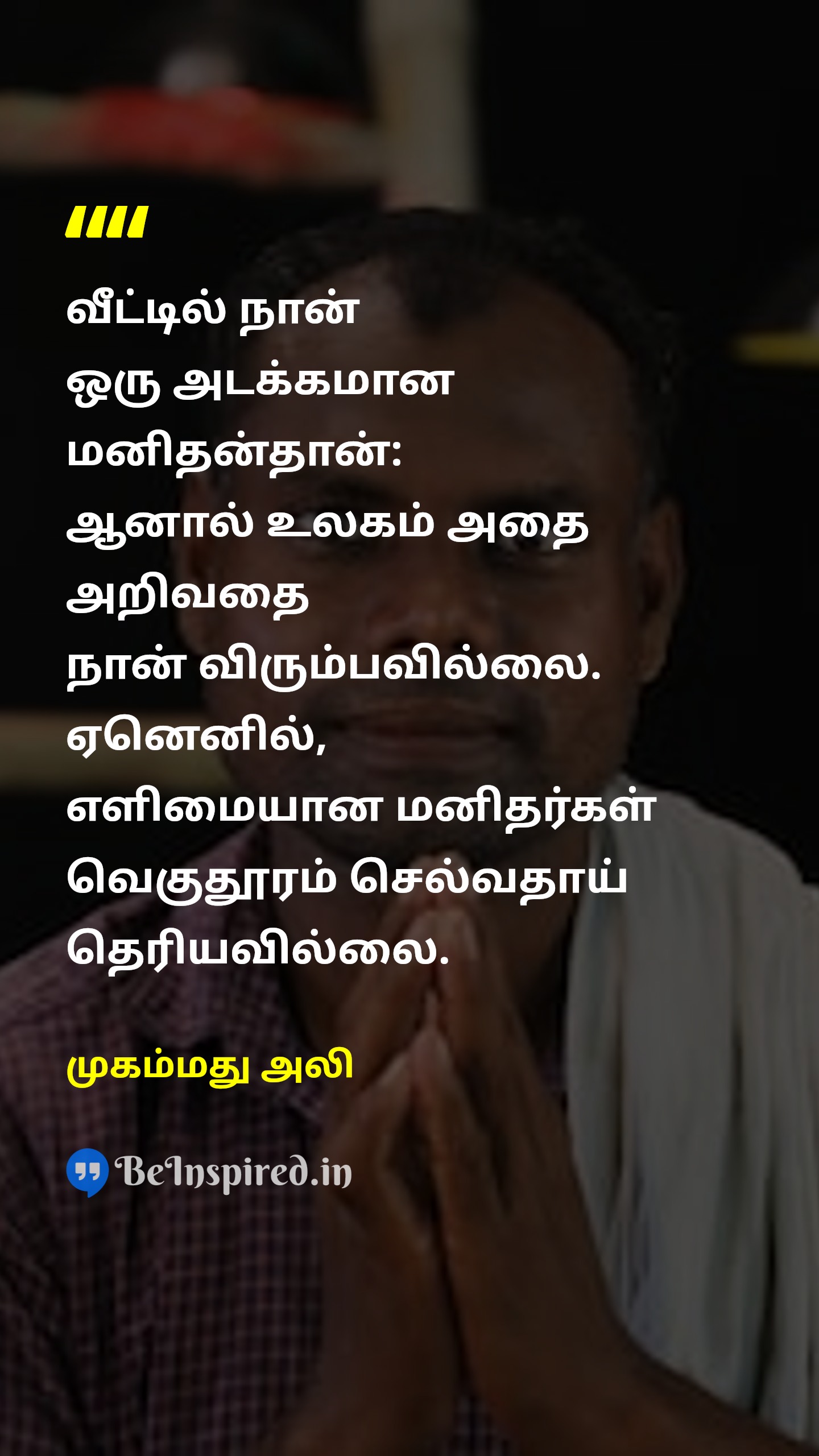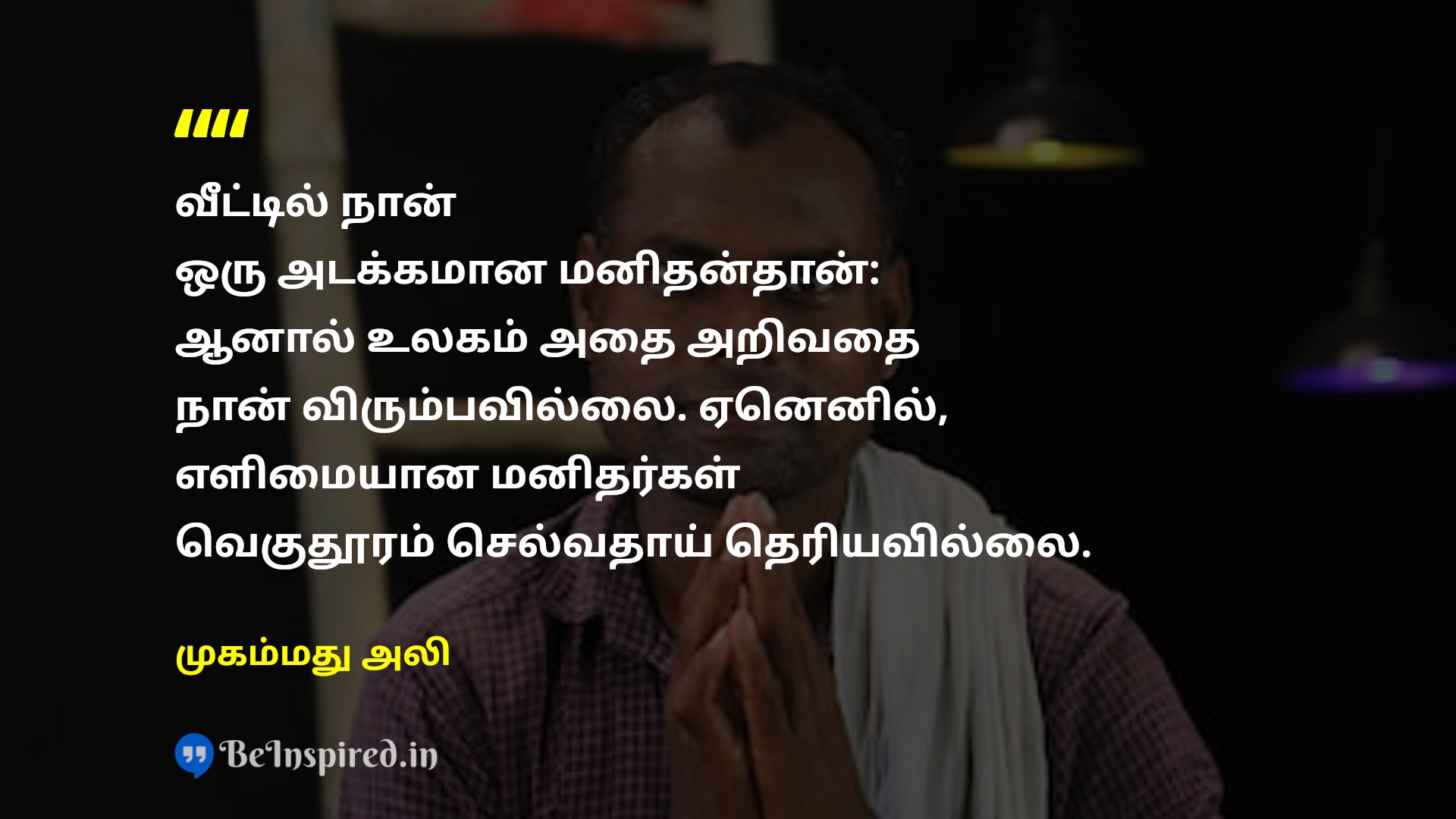 வீட்டில் நான் ஒரு அடக்கமான மனிதன்தான்: ஆனால் உலகம் அதை அறிவதை நான் விரும்பவில்லை. ஏனெனில், எளிமையான மனிதர்கள் வெகுதூரம் செல்வதாய் தெரியவில்லை.