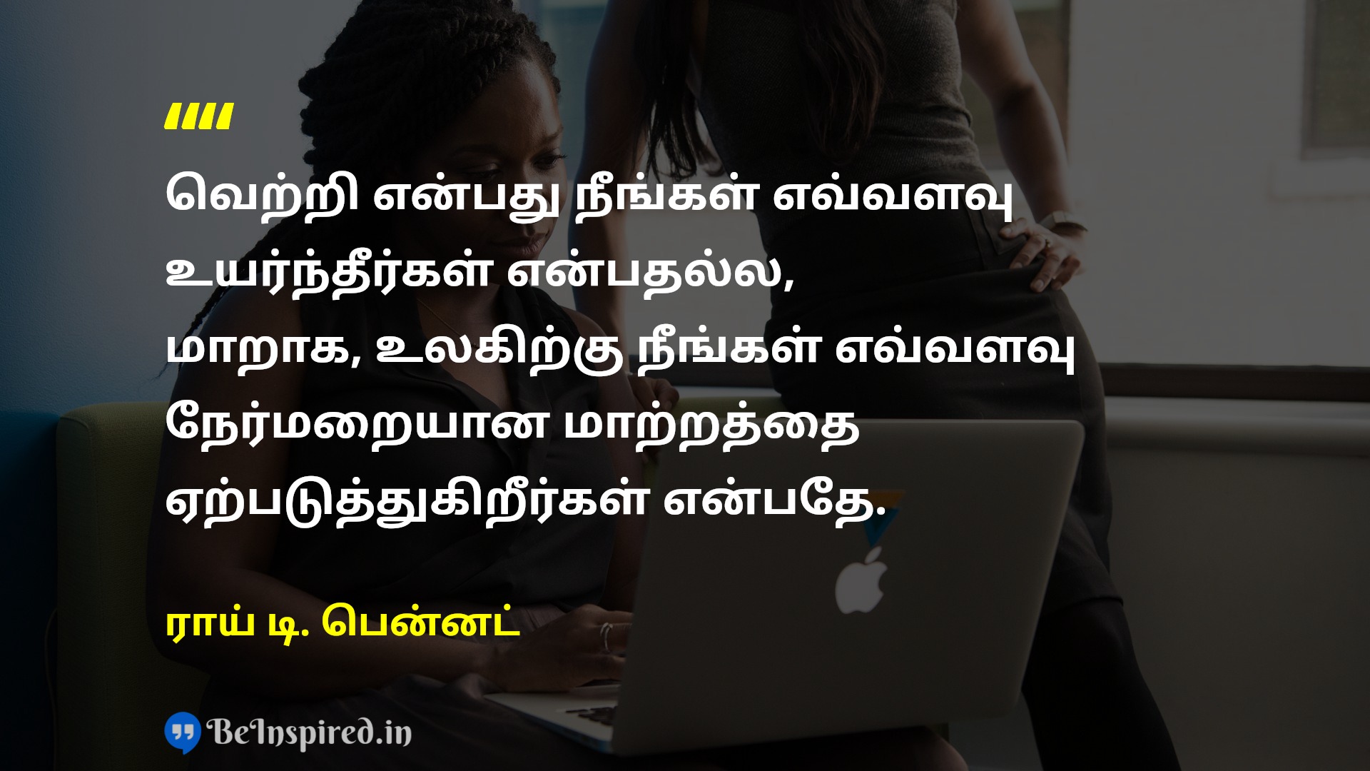 வெற்றி என்பது நீங்கள் எவ்வளவு உயர்ந்தீர்கள் என்பதல்ல, மாறாக, உலகிற்கு நீங்கள் எவ்வளவு நேர்மறையான மாற்றத்தை ஏற்படுத்துகிறீர்கள் என்பதே.
