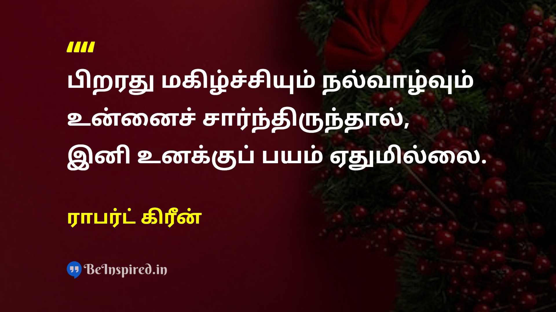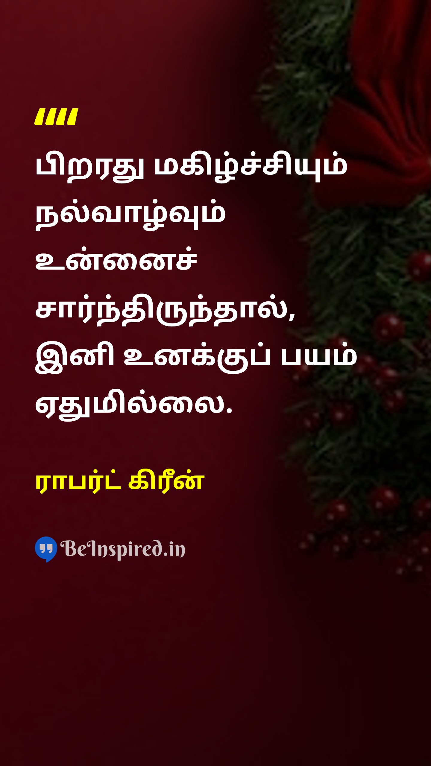 பிறரது மகிழ்ச்சியும் நல்வாழ்வும் உன்னைச் சார்ந்திருந்தால், இனி உனக்குப் பயம் ஏதுமில்லை.