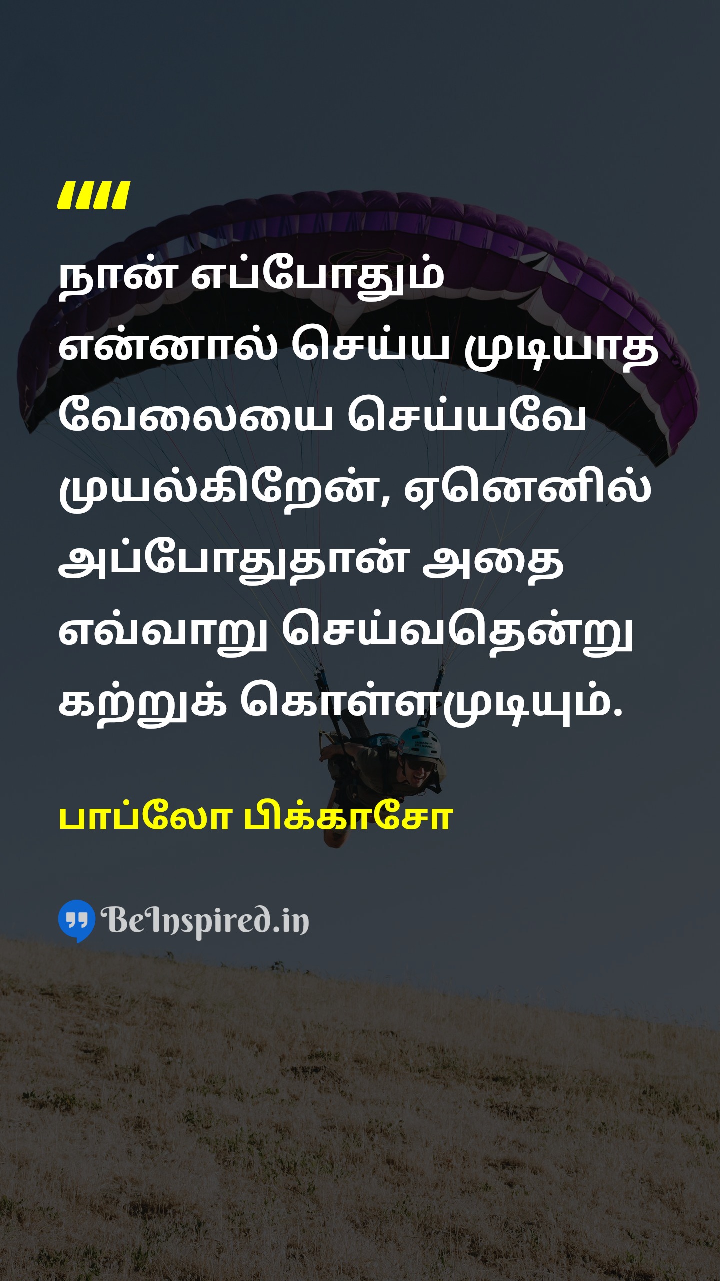 நான் எப்போதும் என்னால் செய்ய முடியாத வேலையை செய்யவே முயல்கிறேன், ஏனெனில் அப்போதுதான் அதை எவ்வாறு செய்வதென்று கற்றுக் கொள்ளமுடியும்.