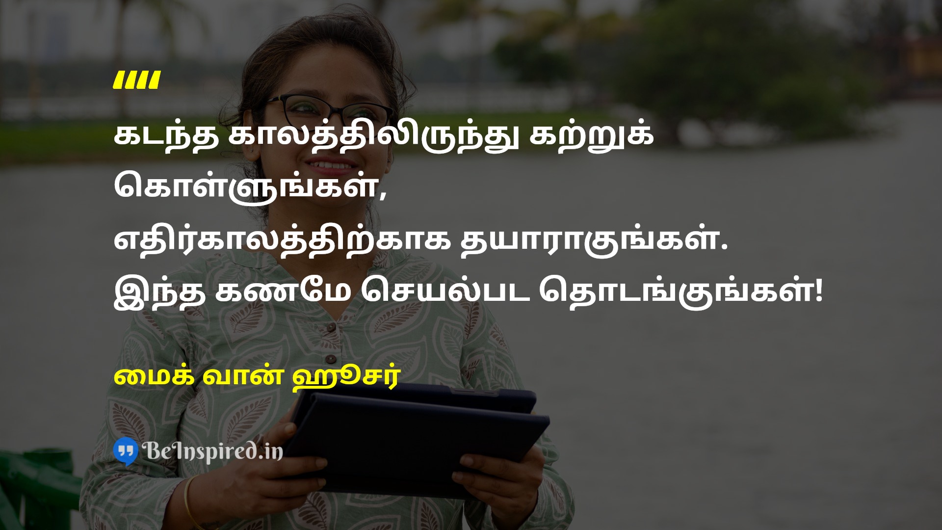 கடந்த காலத்திலிருந்து கற்றுக் கொள்ளுங்கள், எதிர்காலத்திற்காக தயாராகுங்கள். இந்த கணமே செயல்பட தொடங்குங்கள்!