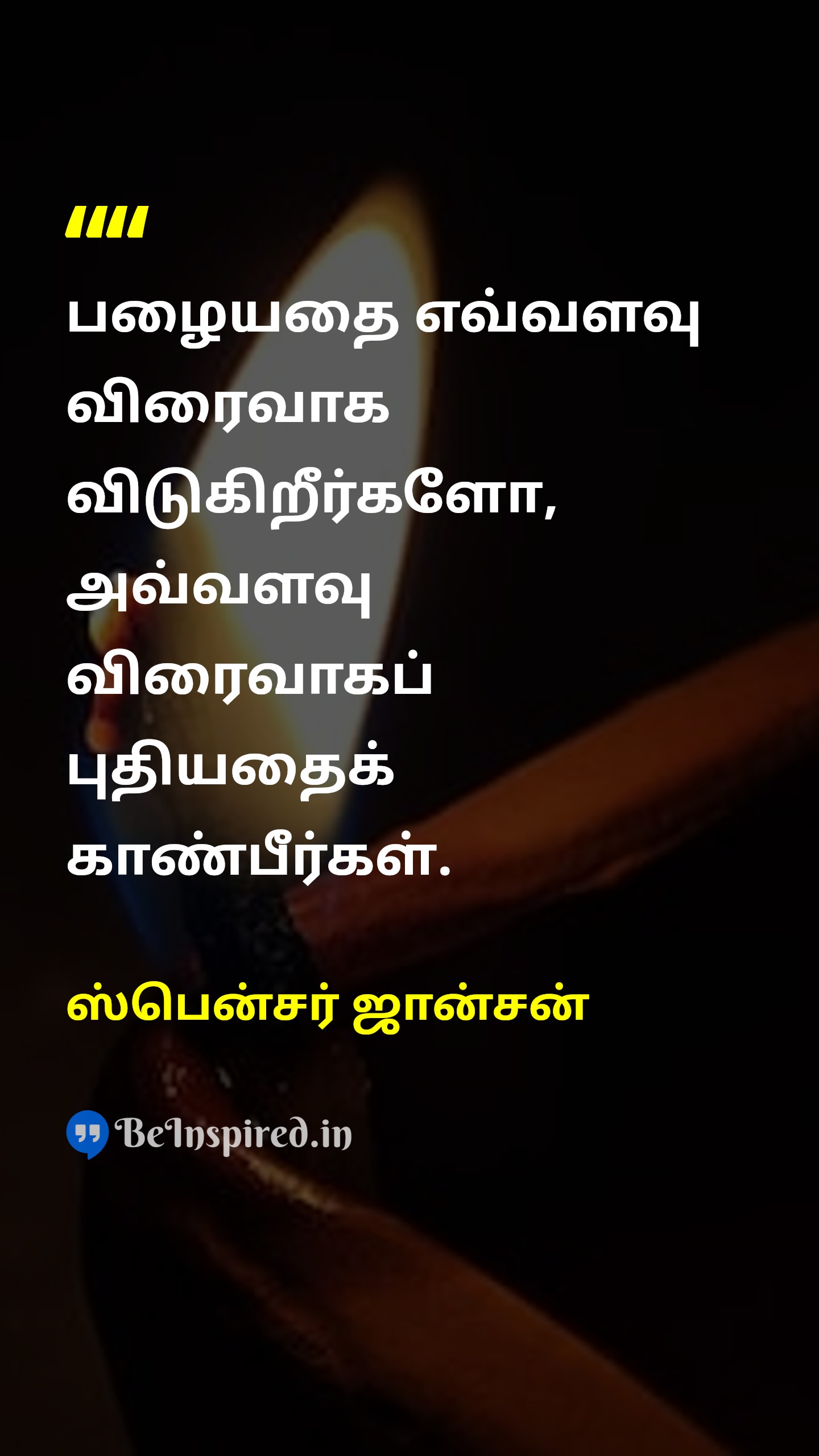 பழையதை எவ்வளவு விரைவாக விடுகிறீர்களோ, அவ்வளவு விரைவாகப் புதியதைக் காண்பீர்கள்.
