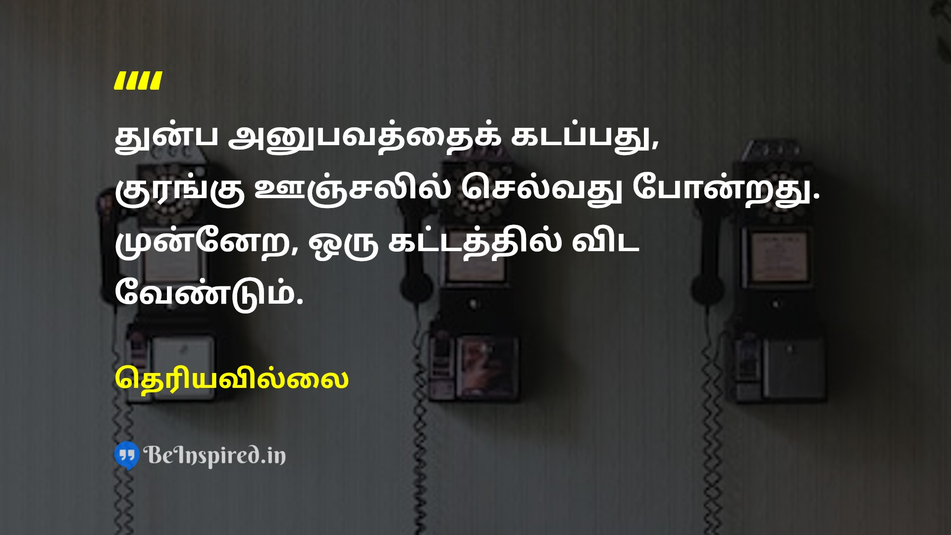 துன்ப அனுபவத்தைக் கடப்பது, குரங்கு ஊஞ்சலில் செல்வது போன்றது. முன்னேற, ஒரு கட்டத்தில் விட வேண்டும்.