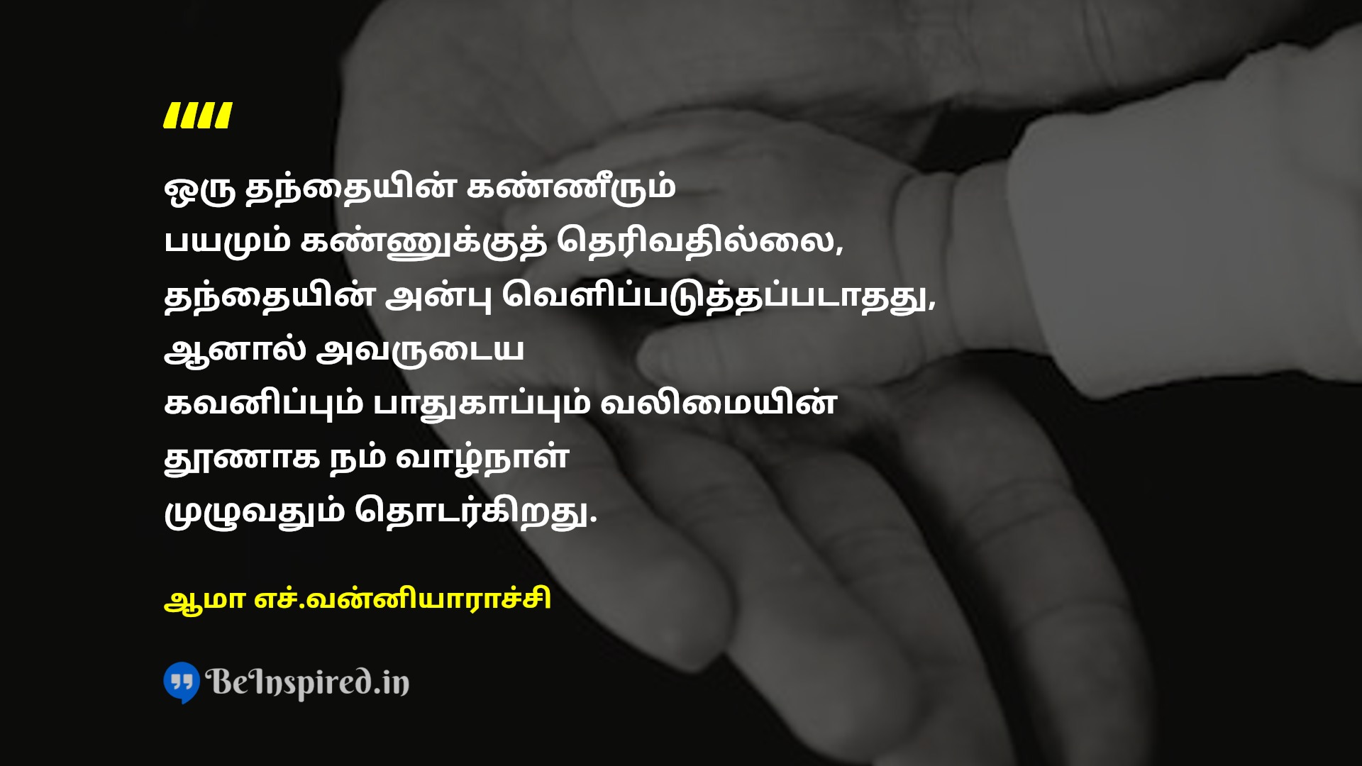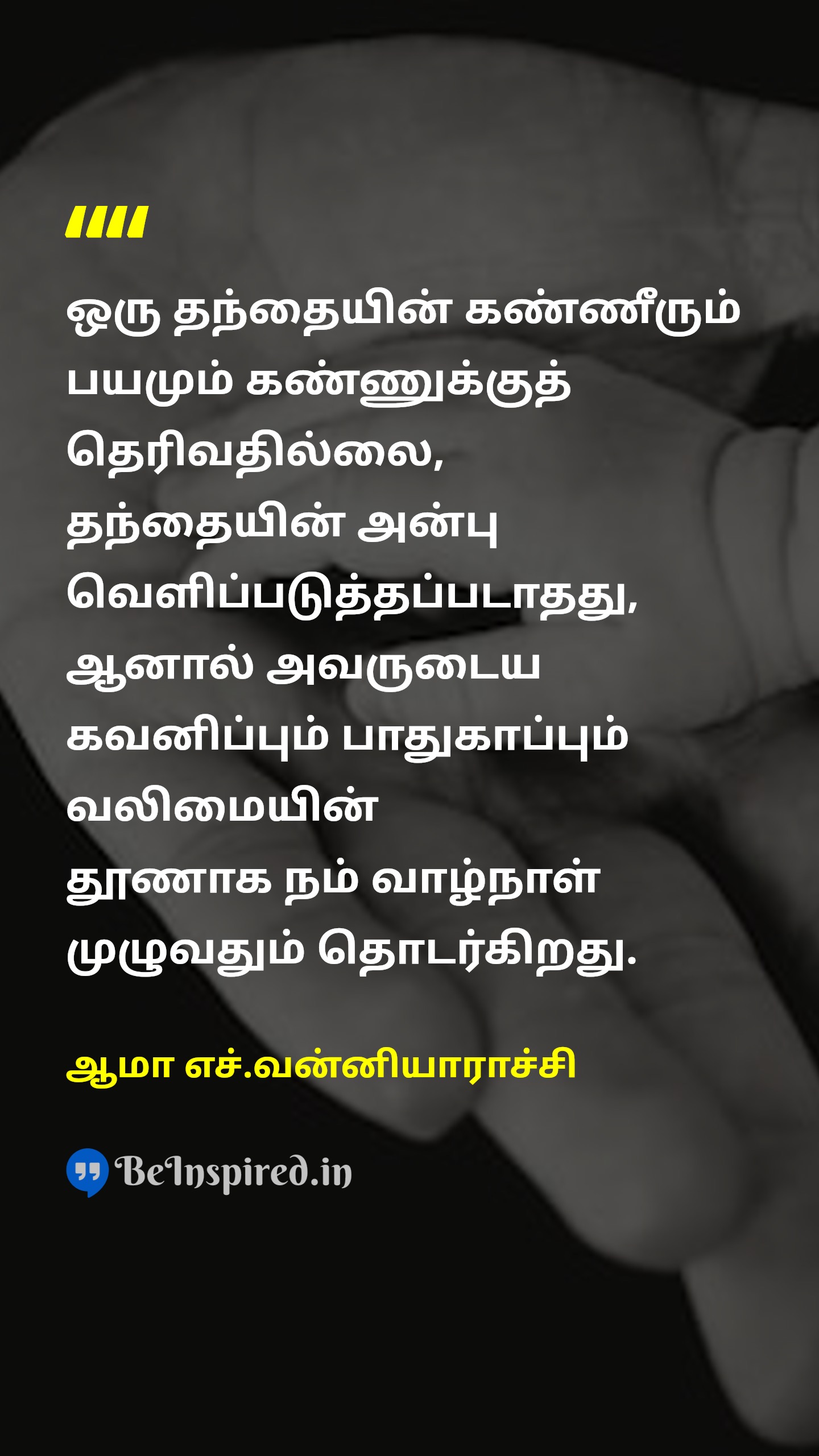 ஒரு தந்தையின் கண்ணீரும் பயமும் கண்ணுக்குத் தெரிவதில்லை, தந்தையின் அன்பு வெளிப்படுத்தப்படாதது, ஆனால் அவருடைய கவனிப்பும் பாதுகாப்பும் வலிமையின் தூணாக நம் வாழ்நாள் முழுவதும் தொடர்கிறது.