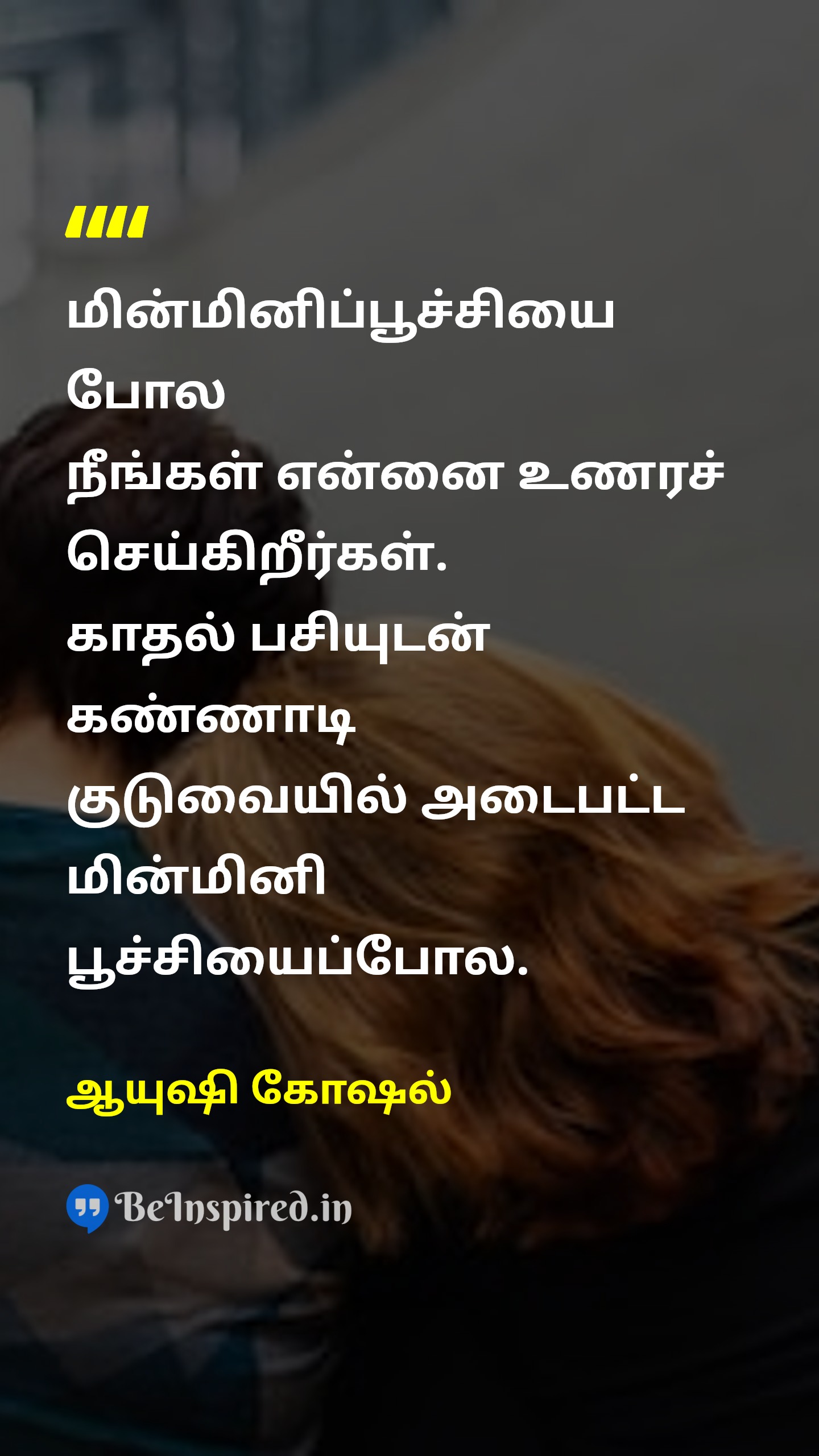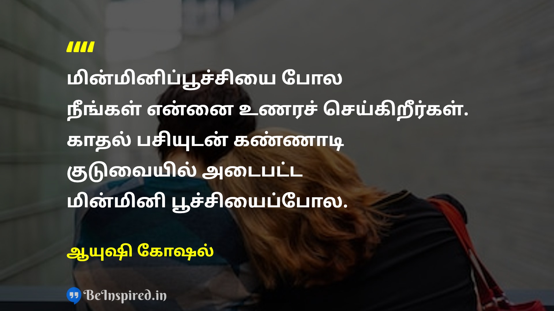 மின்மினிப்பூச்சியை போல நீங்கள் என்னை உணரச் செய்கிறீர்கள். காதல் பசியுடன் கண்ணாடி குடுவையில் அடைபட்ட மின்மினி பூச்சியைப்போல.