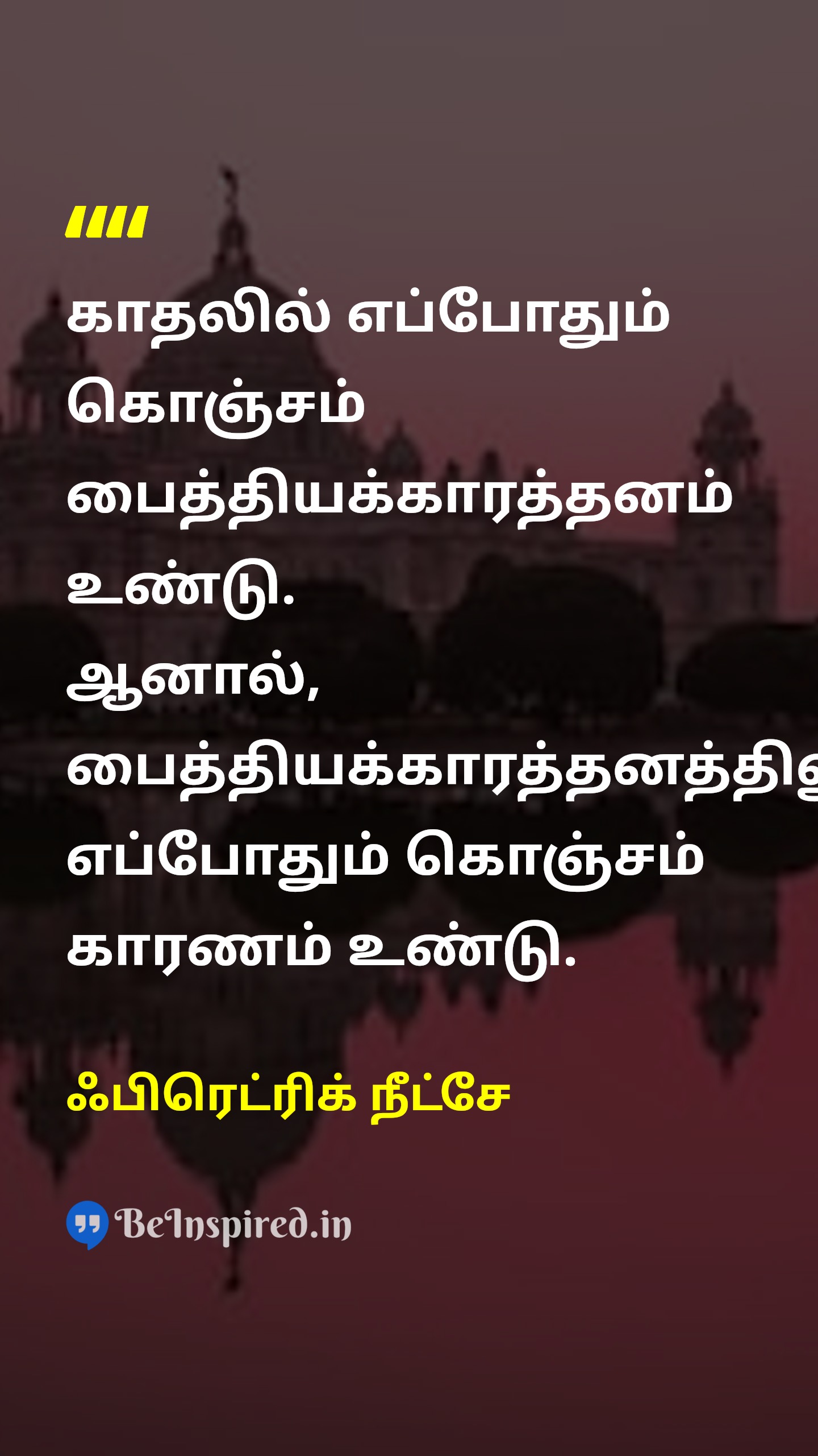 காதலில் எப்போதும் கொஞ்சம் பைத்தியக்காரத்தனம் உண்டு. ஆனால், பைத்தியக்காரத்தனத்திலும் எப்போதும் கொஞ்சம் காரணம் உண்டு.