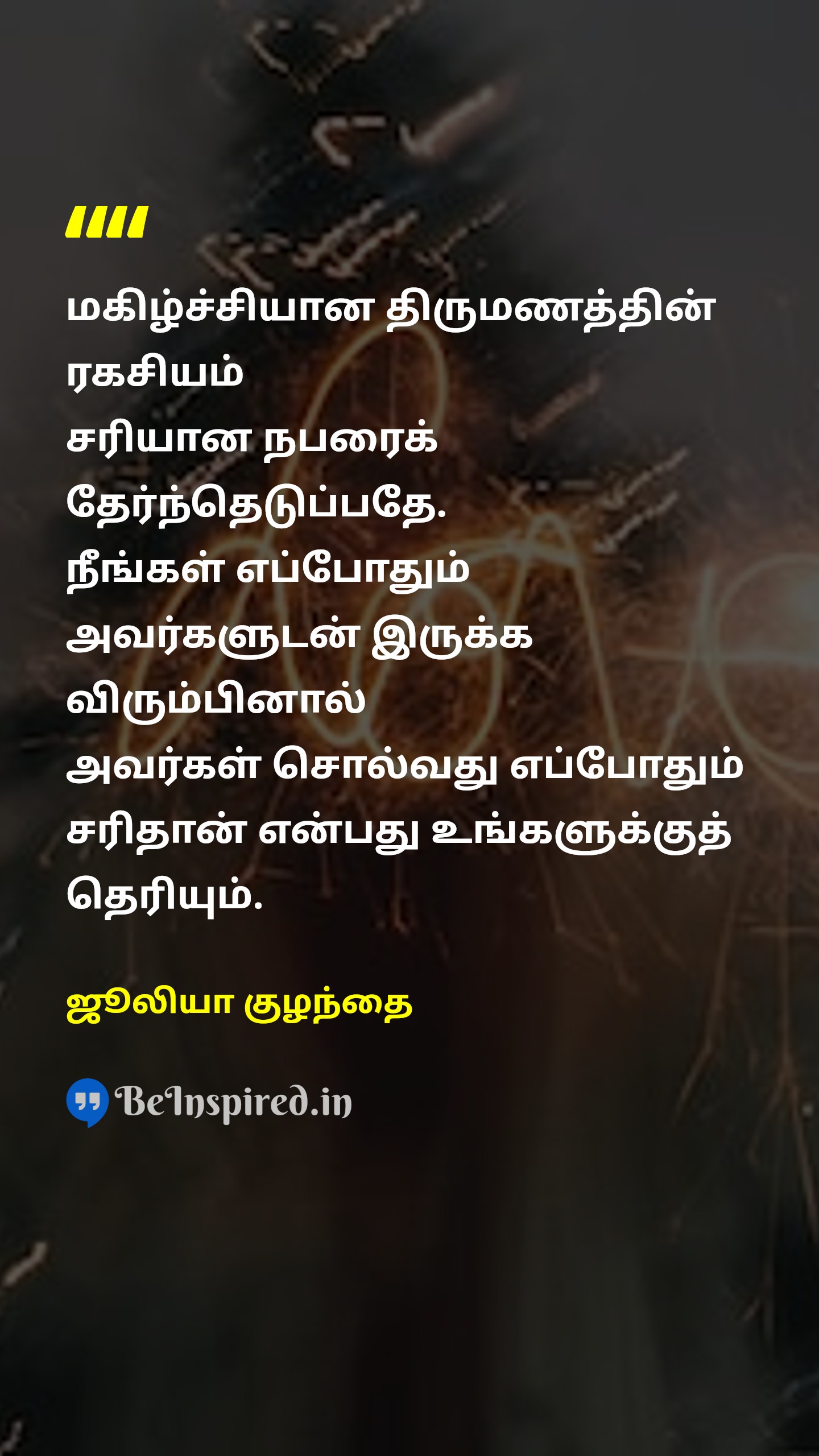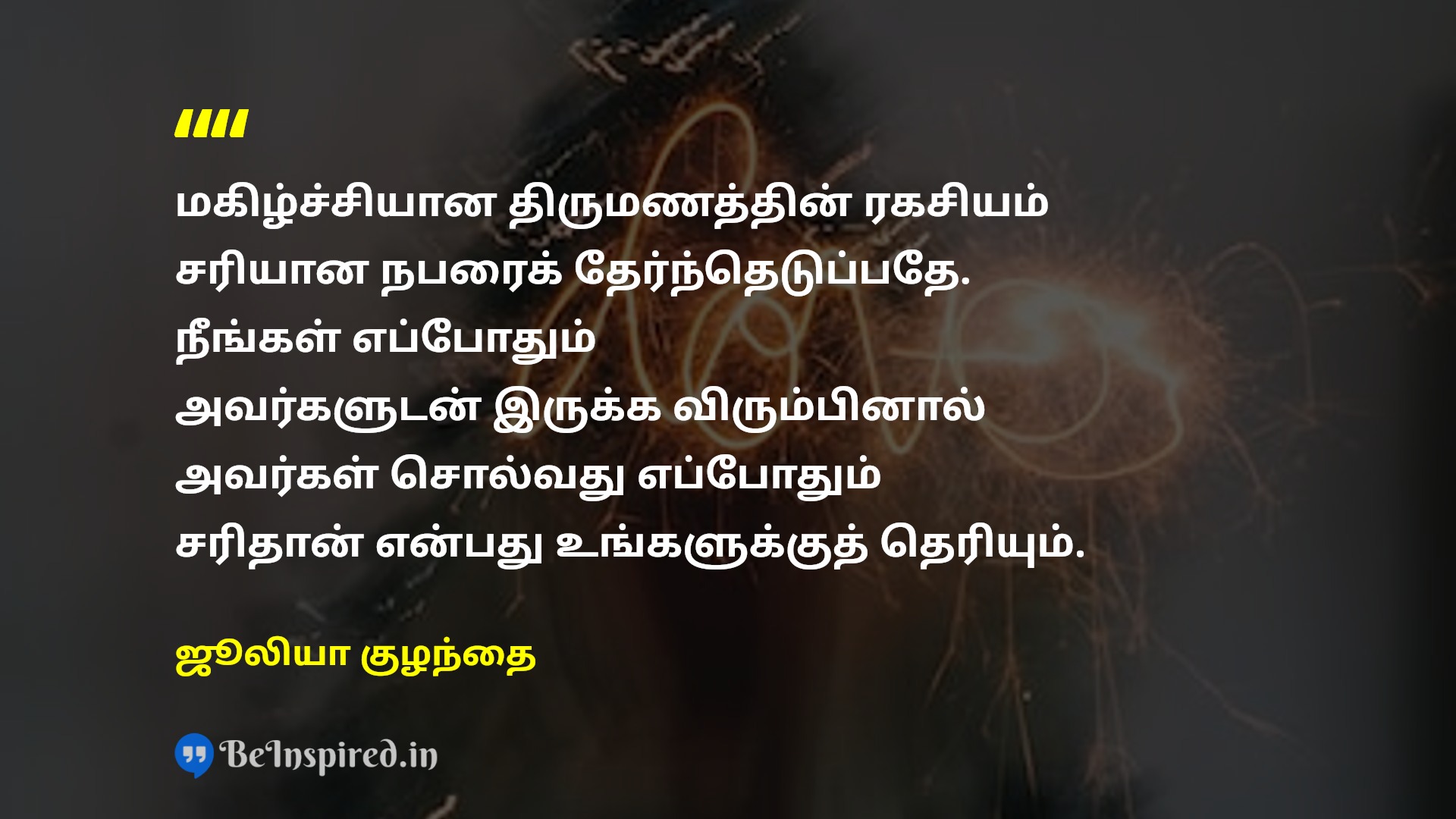 மகிழ்ச்சியான திருமணத்தின் ரகசியம் சரியான நபரைக் தேர்ந்தெடுப்பதே. நீங்கள் எப்போதும் அவர்களுடன் இருக்க விரும்பினால் அவர்கள் சொல்வது எப்போதும் சரிதான் என்பது உங்களுக்குத் தெரியும்.