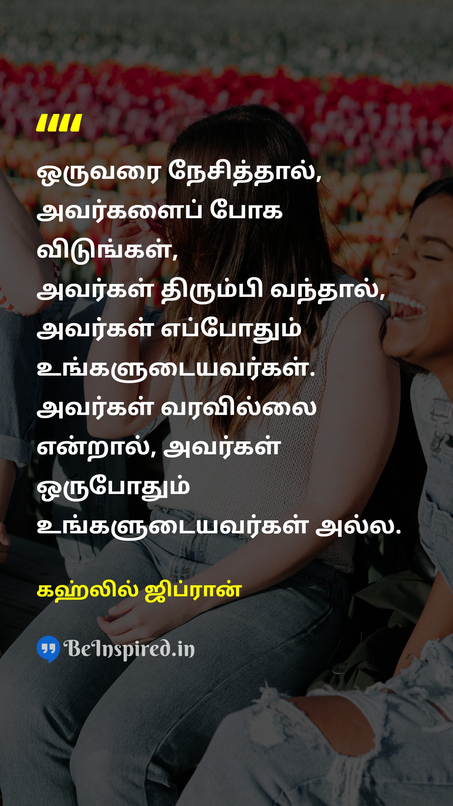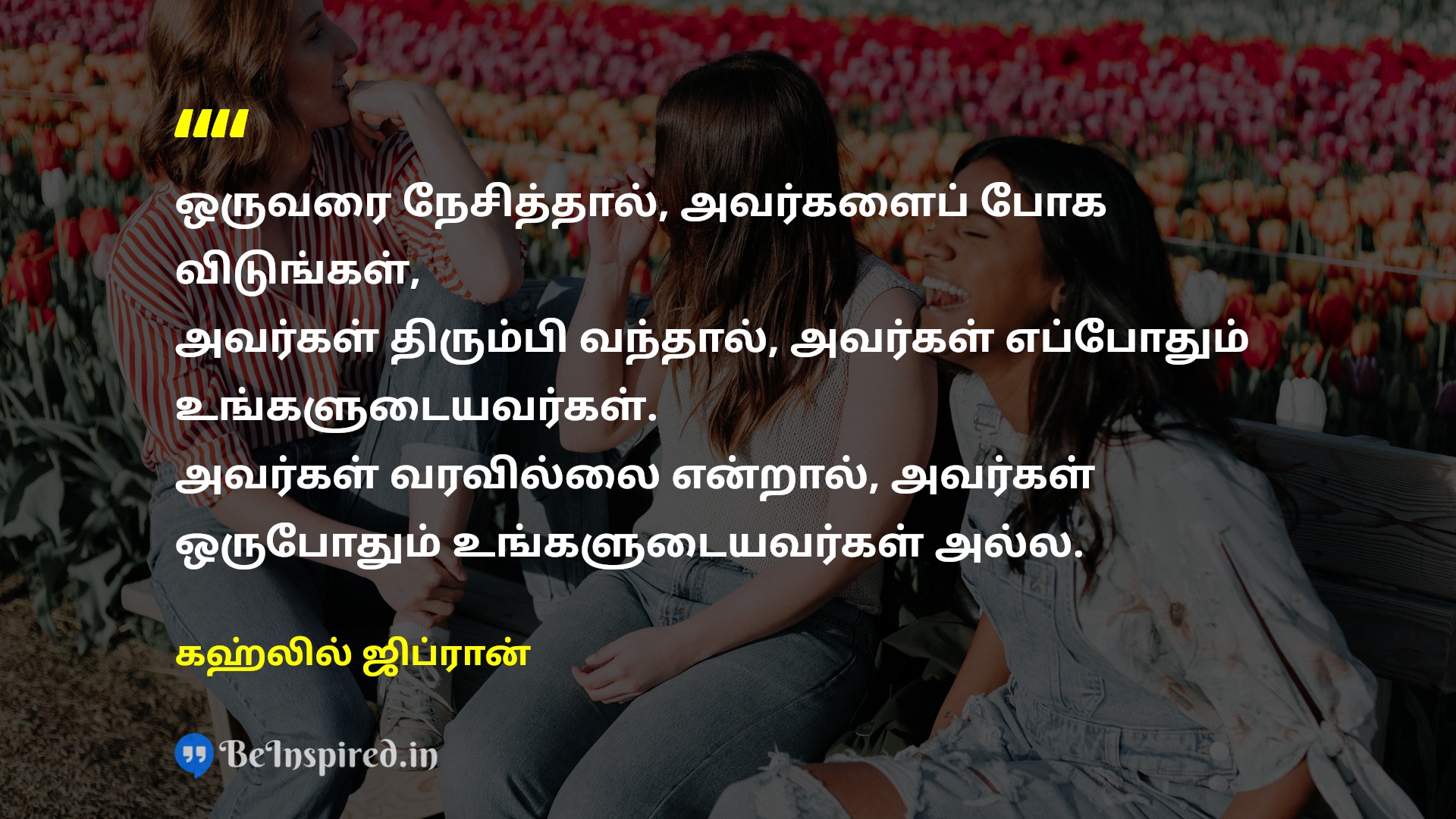 ஒருவரை நேசித்தால், அவர்களைப் போக விடுங்கள், அவர்கள் திரும்பி வந்தால், அவர்கள் எப்போதும் உங்களுடையவர்கள். அவர்கள் வரவில்லை என்றால், அவர்கள் ஒருபோதும் உங்களுடையவர்கள் அல்ல.
