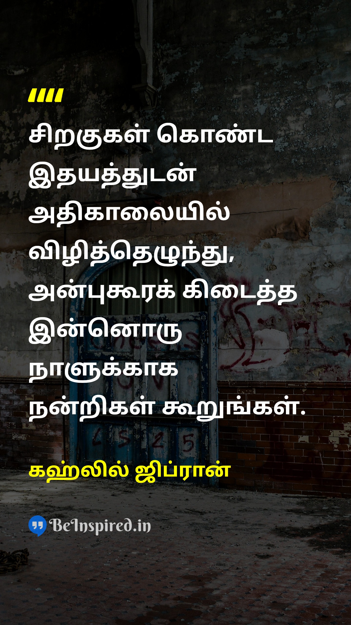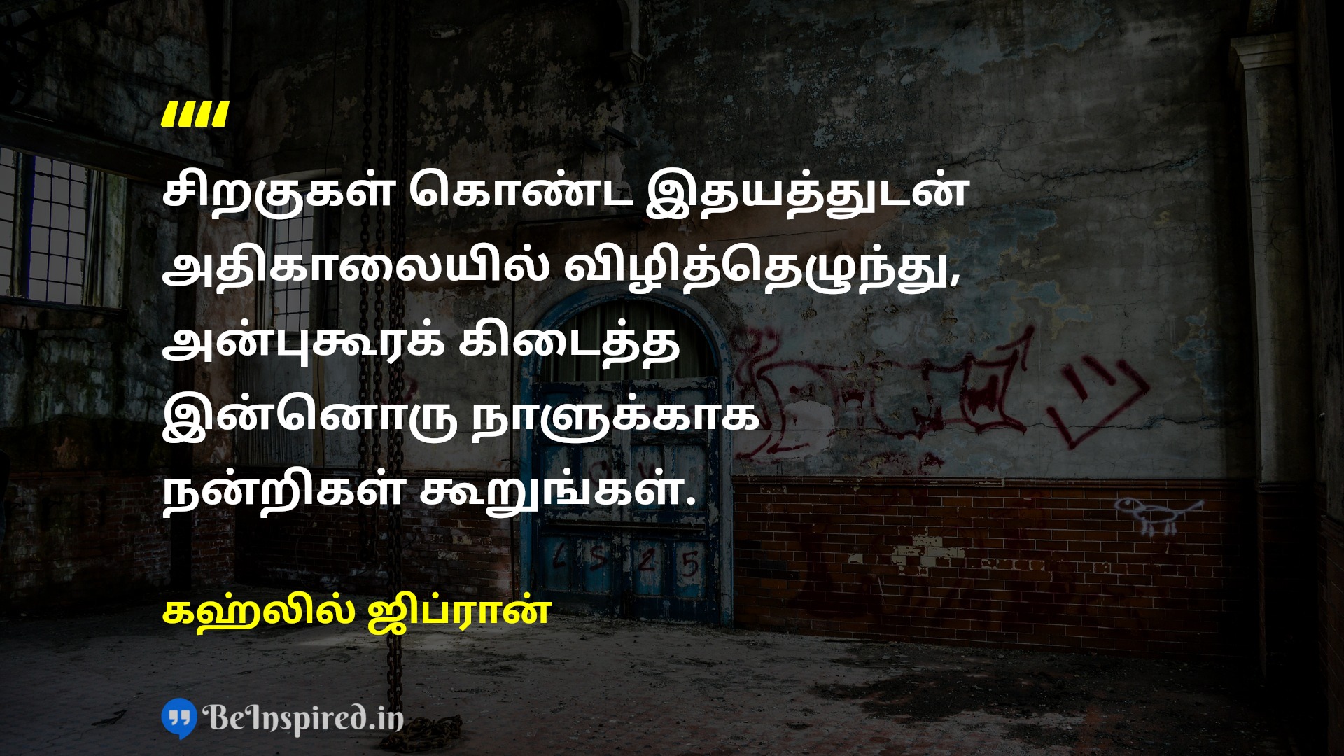 சிறகுகள் கொண்ட இதயத்துடன் அதிகாலையில் விழித்தெழுந்து, அன்புகூரக் கிடைத்த இன்னொரு நாளுக்காக நன்றிகள் கூறுங்கள்.