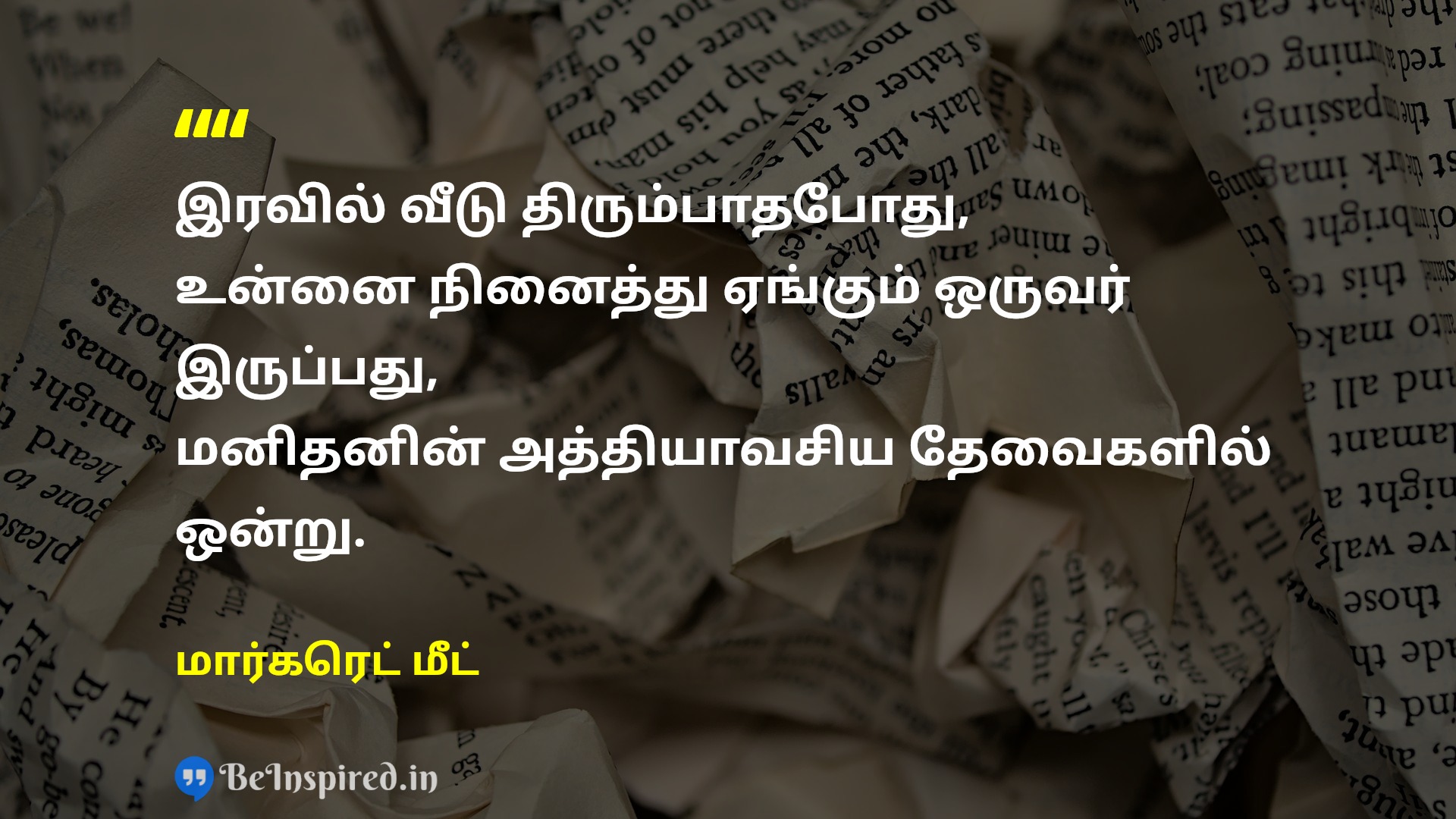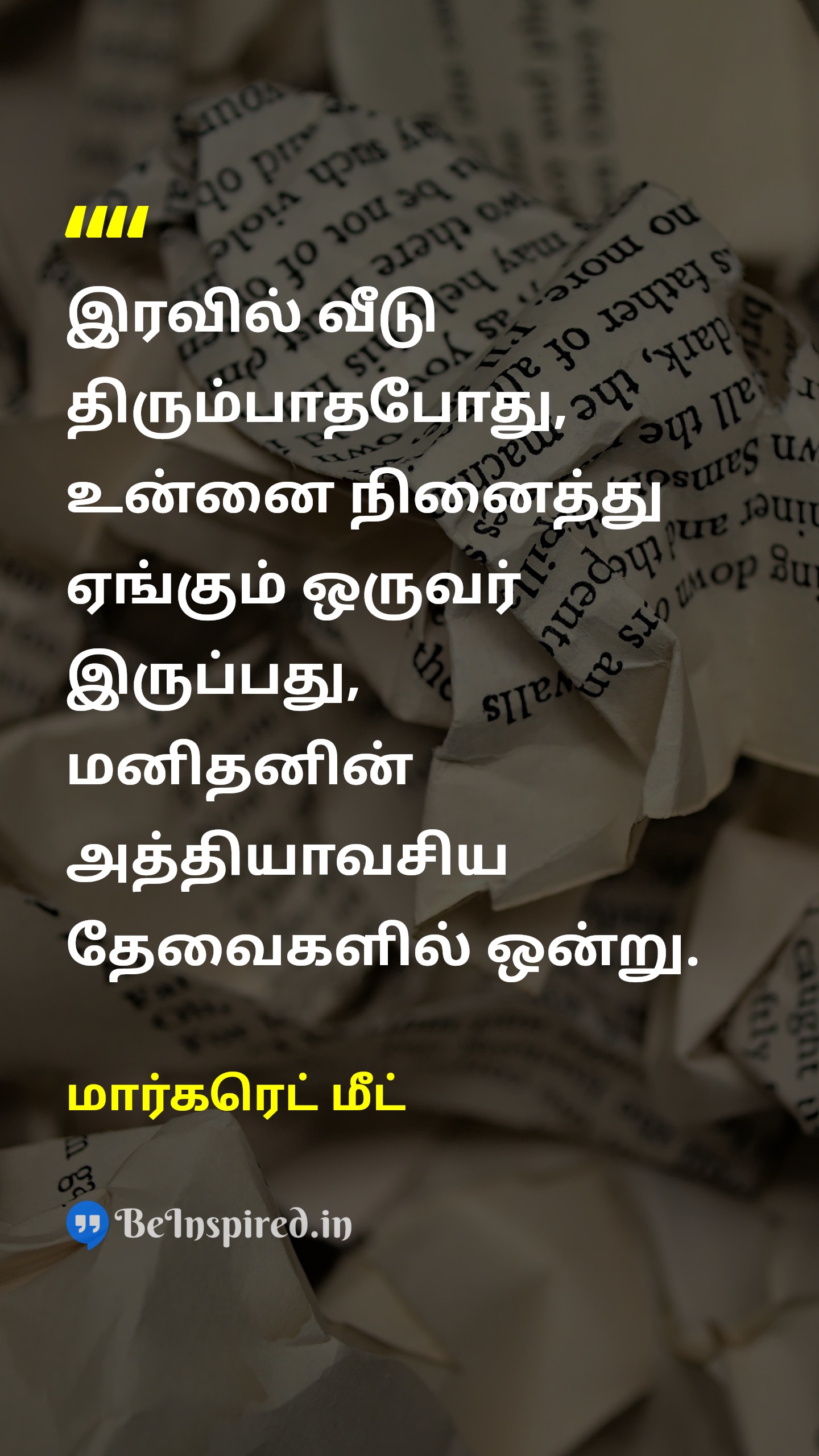 இரவில் வீடு திரும்பாதபோது, உன்னை நினைத்து ஏங்கும் ஒருவர் இருப்பது, மனிதனின் அத்தியாவசிய தேவைகளில் ஒன்று.