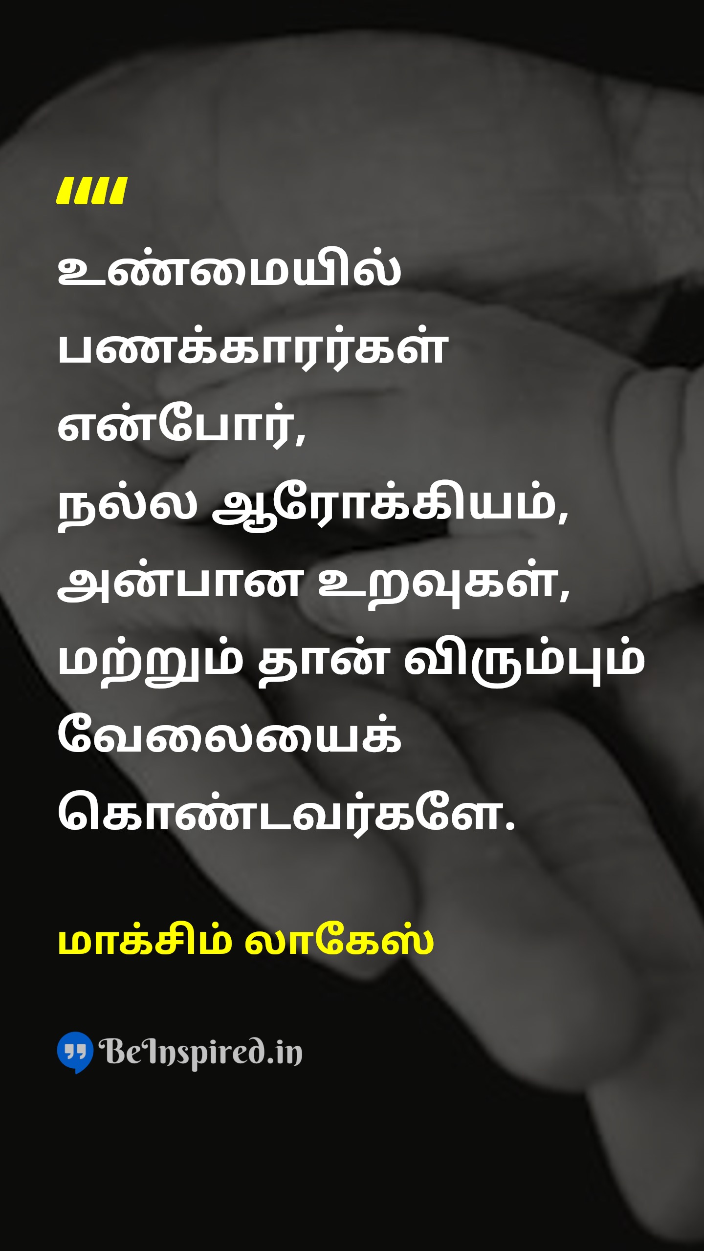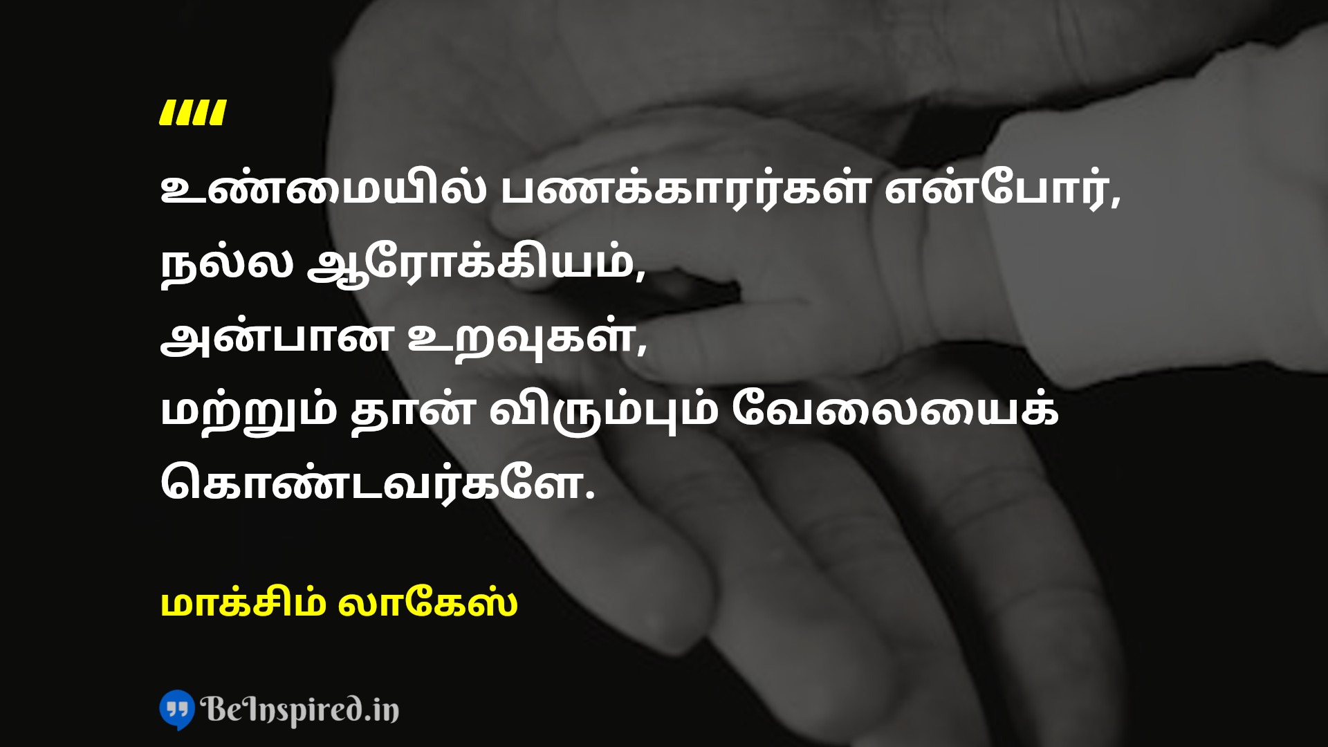உண்மையில் பணக்காரர்கள் என்போர், நல்ல ஆரோக்கியம், அன்பான உறவுகள், மற்றும் தான் விரும்பும் வேலையைக் கொண்டவர்களே.