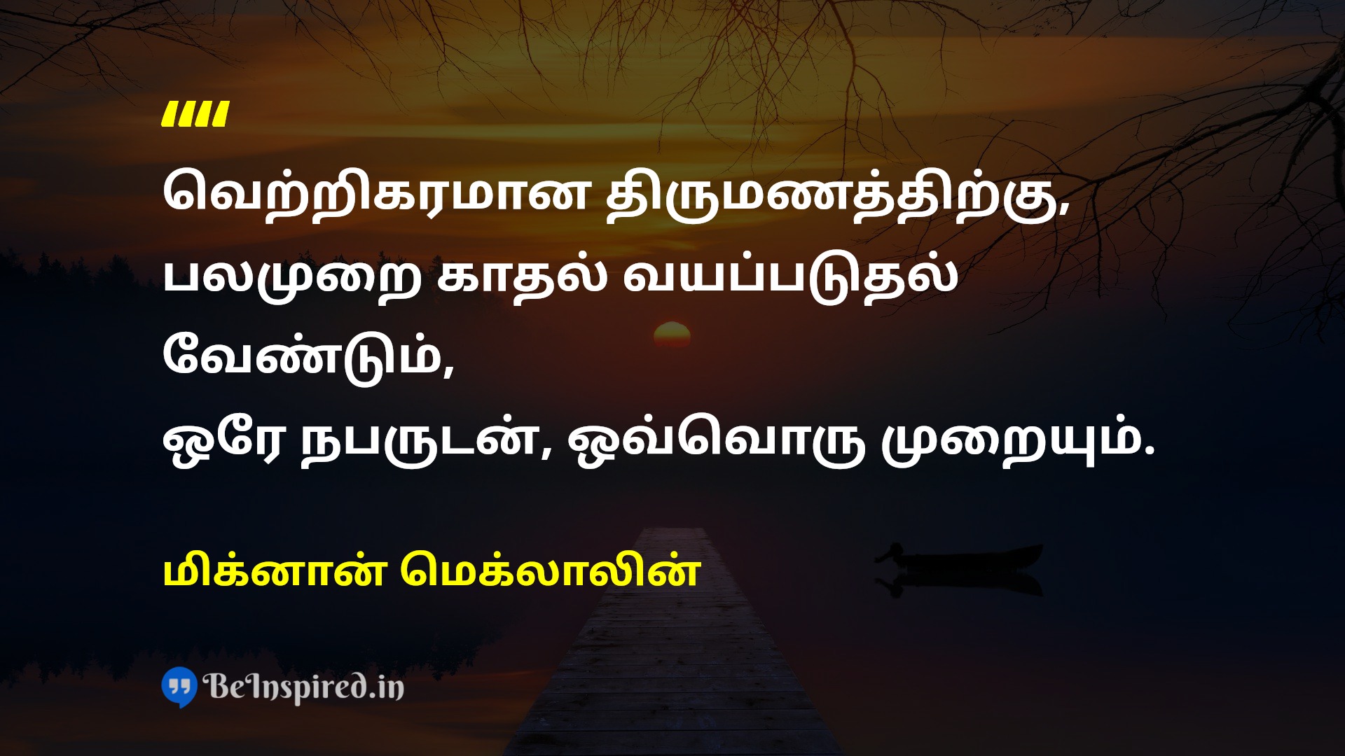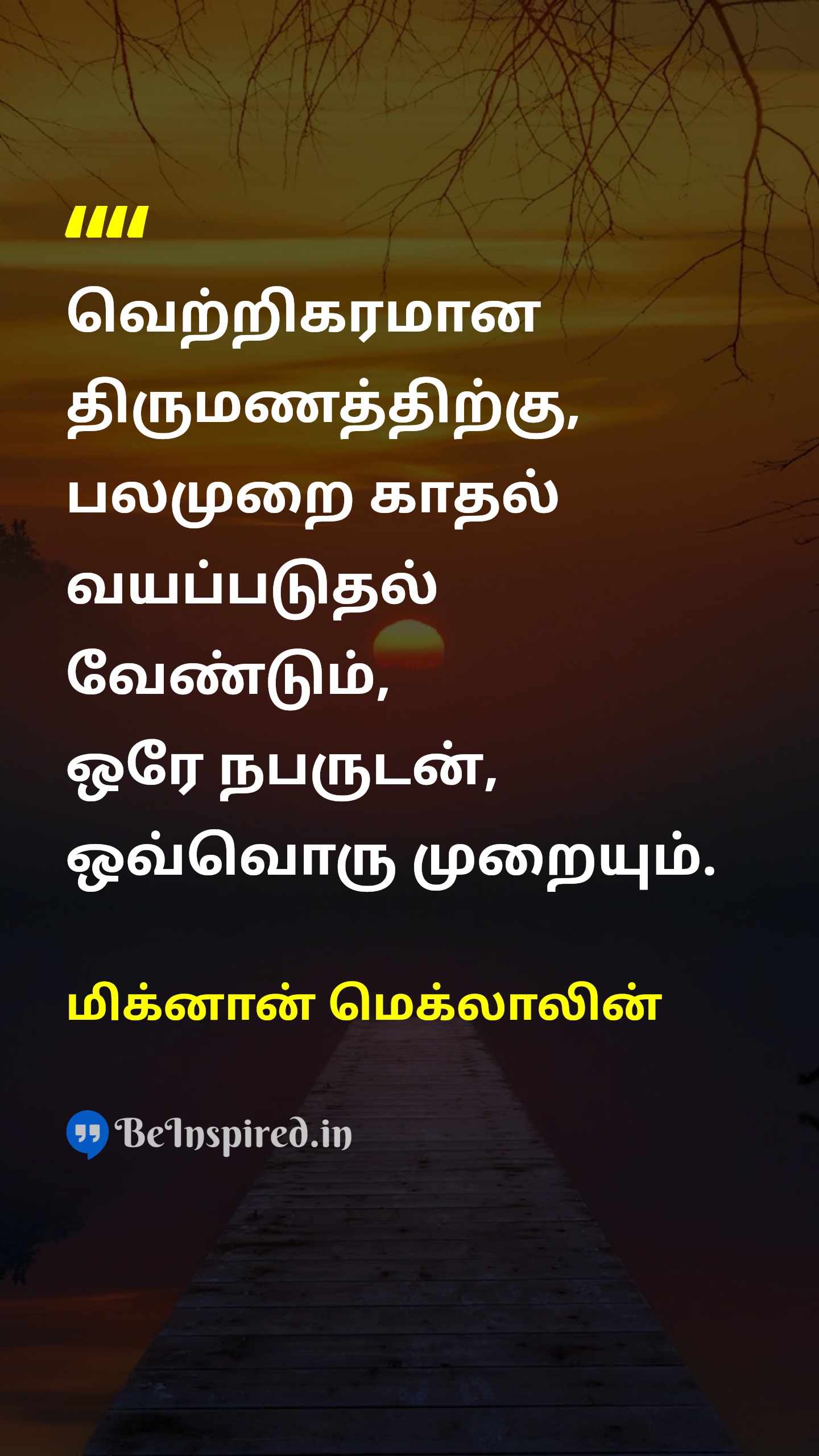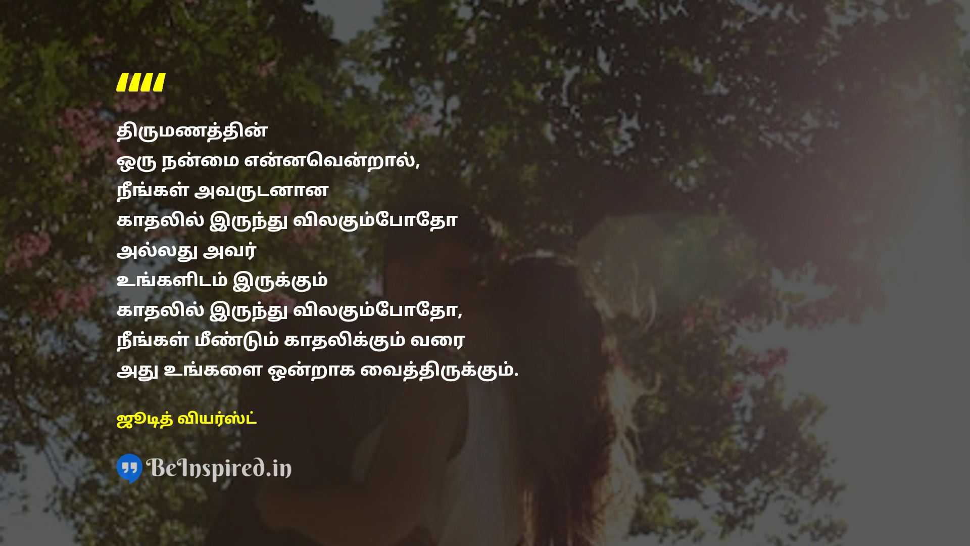 திருமணம் உண்மையில் இதயத்தில் நடைபெறுகிறது, வீட்டிலோ கோவிலிலோ அல்ல. அது நீங்கள் தொடர்ந்து எடுக்கும் தொடர் முடிவுகளே. அந்தத் முடிவுகள் உங்கள் கணவன் அல்லது மனைவியை நீங்கள் நடத்தும் விதத்தில் பிரதிபலிக்கிறது.