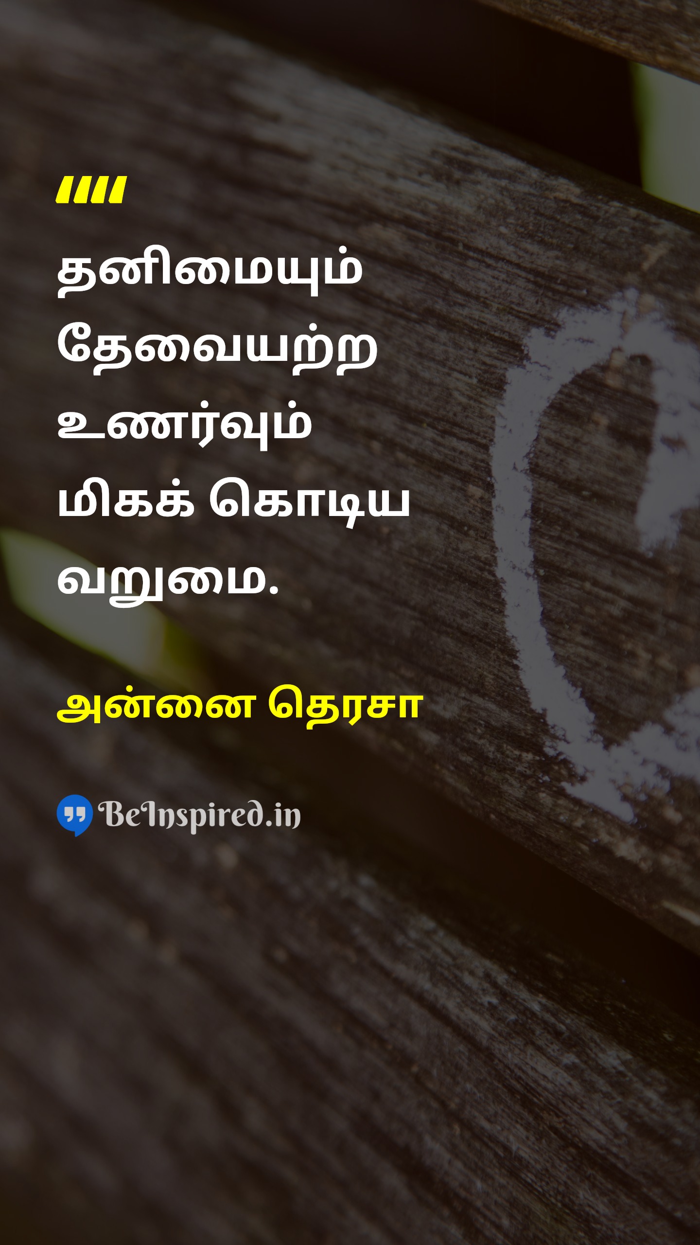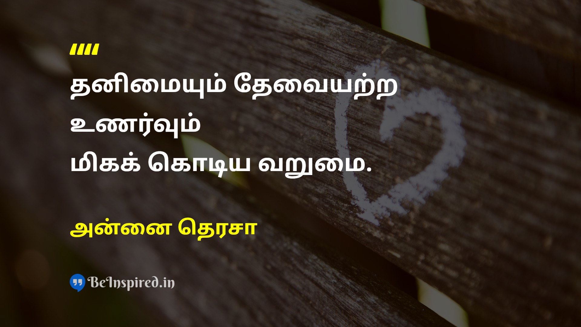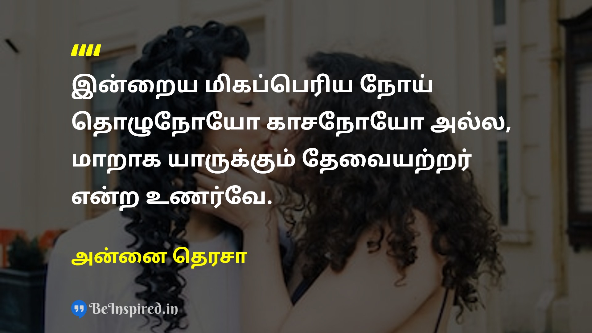 இன்றைய மிகப்பெரிய நோய் தொழுநோயோ காசநோயோ அல்ல, மாறாக யாருக்கும் தேவையற்றர் என்ற உணர்வே.