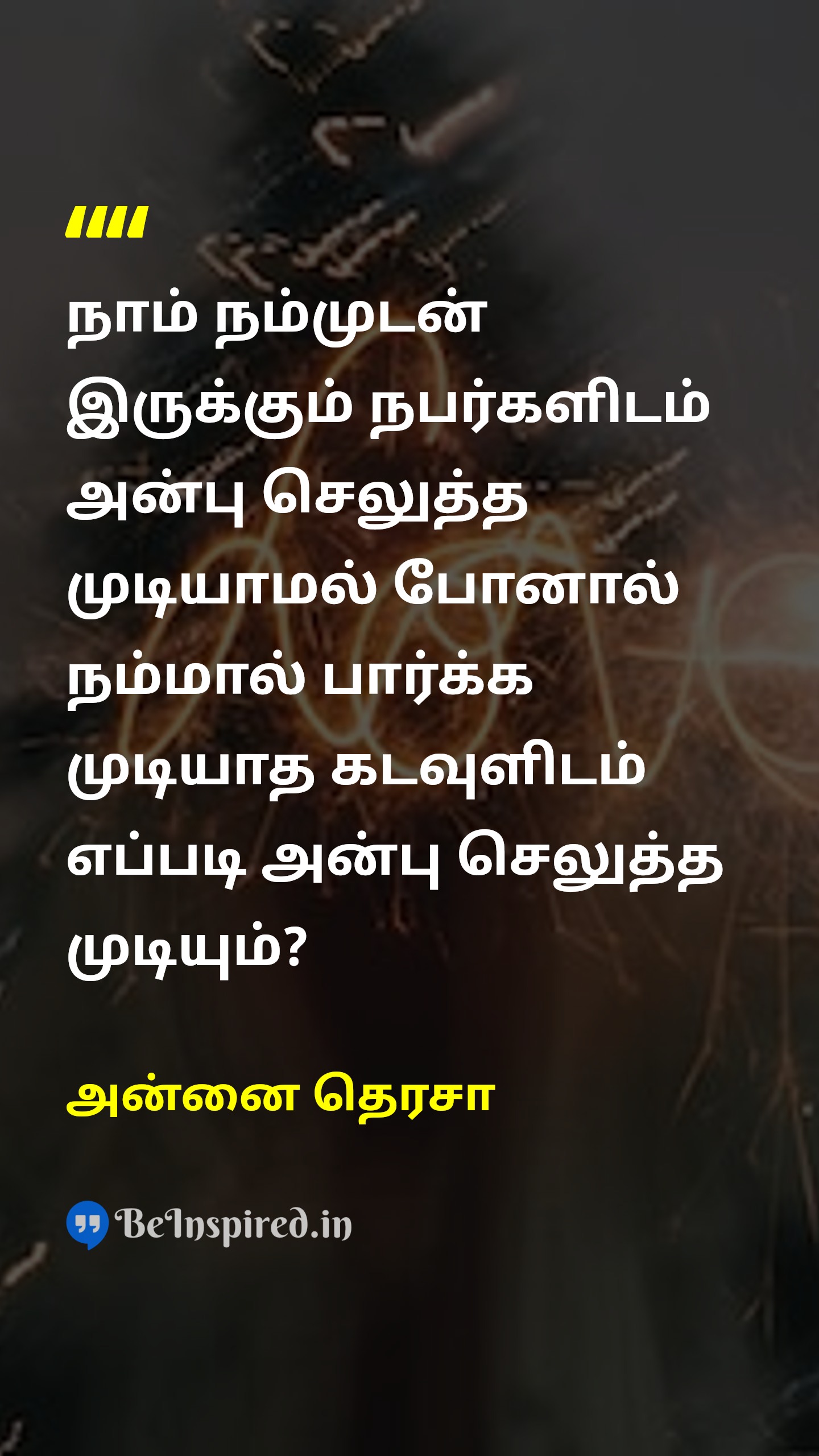 நாம் நம்முடன் இருக்கும் நபர்களிடம் அன்பு செலுத்த முடியாமல் போனால் நம்மால் பார்க்க முடியாத கடவுளிடம் எப்படி அன்பு செலுத்த முடியும்?
