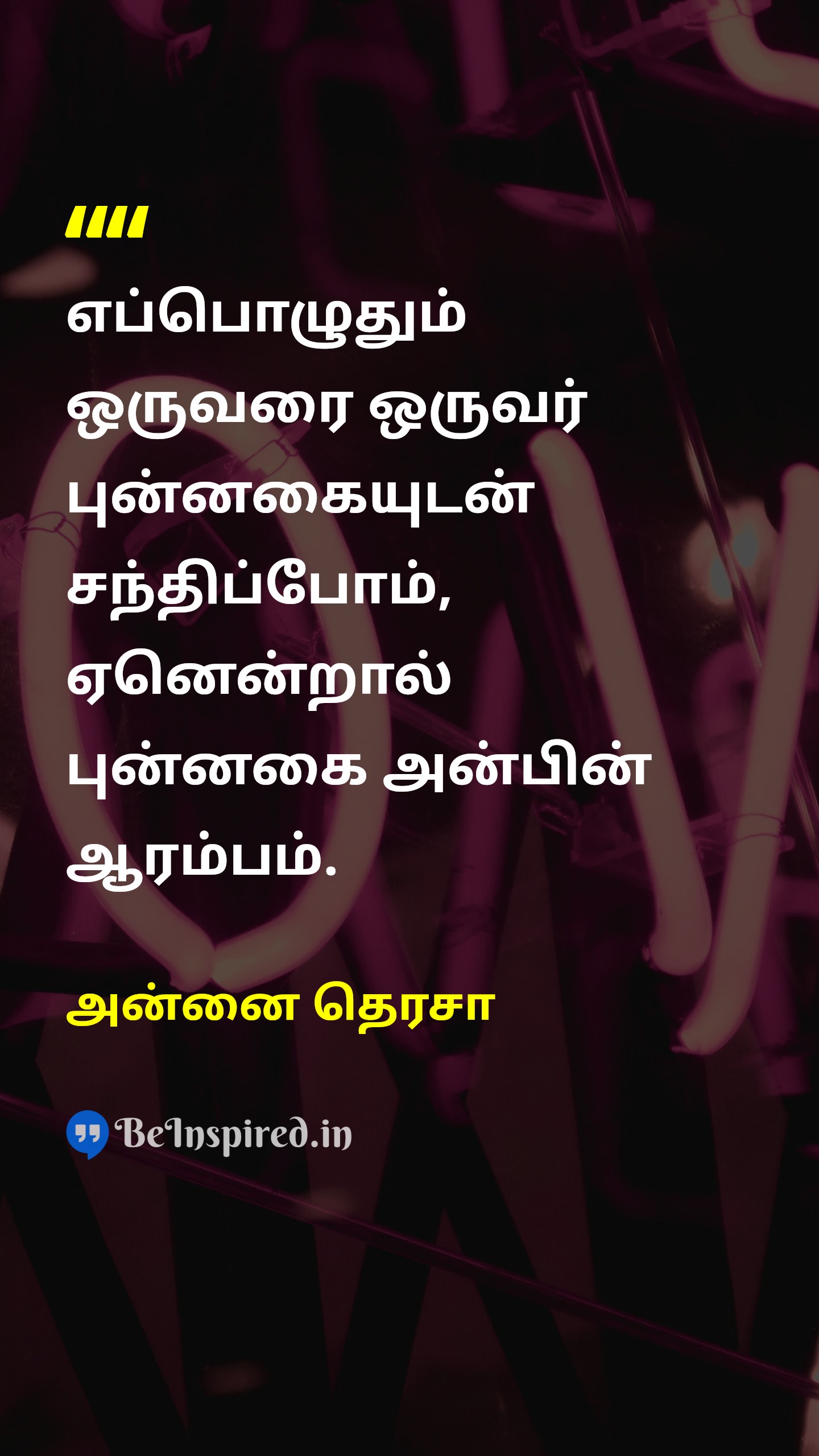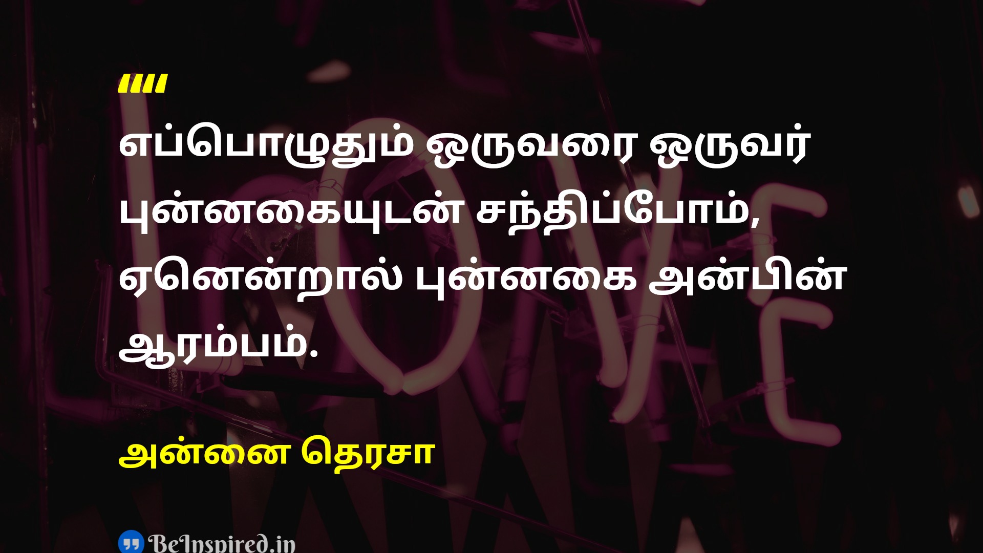 எப்பொழுதும் ஒருவரை ஒருவர் புன்னகையுடன் சந்திப்போம், ஏனென்றால் புன்னகை அன்பின் ஆரம்பம்.