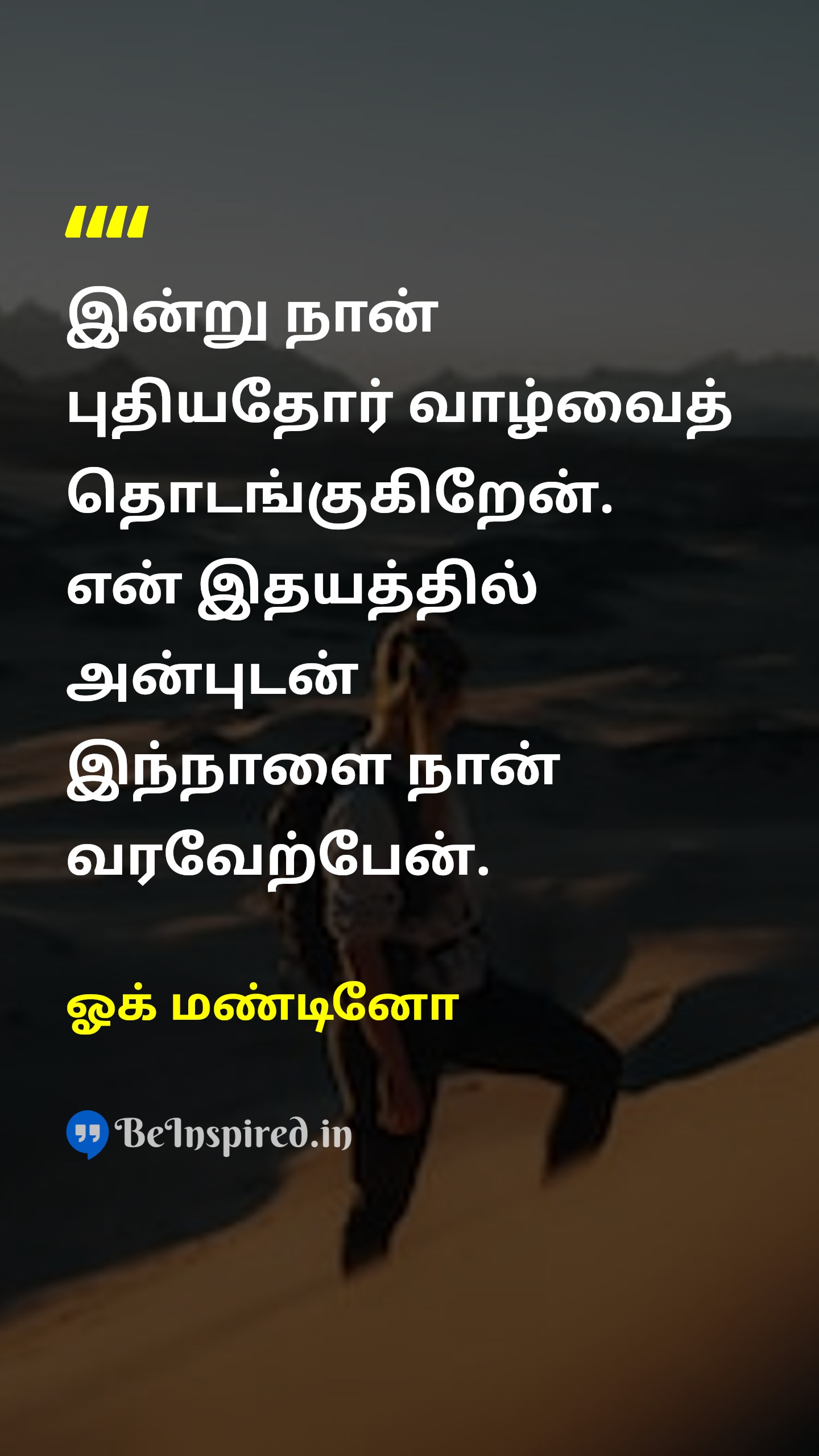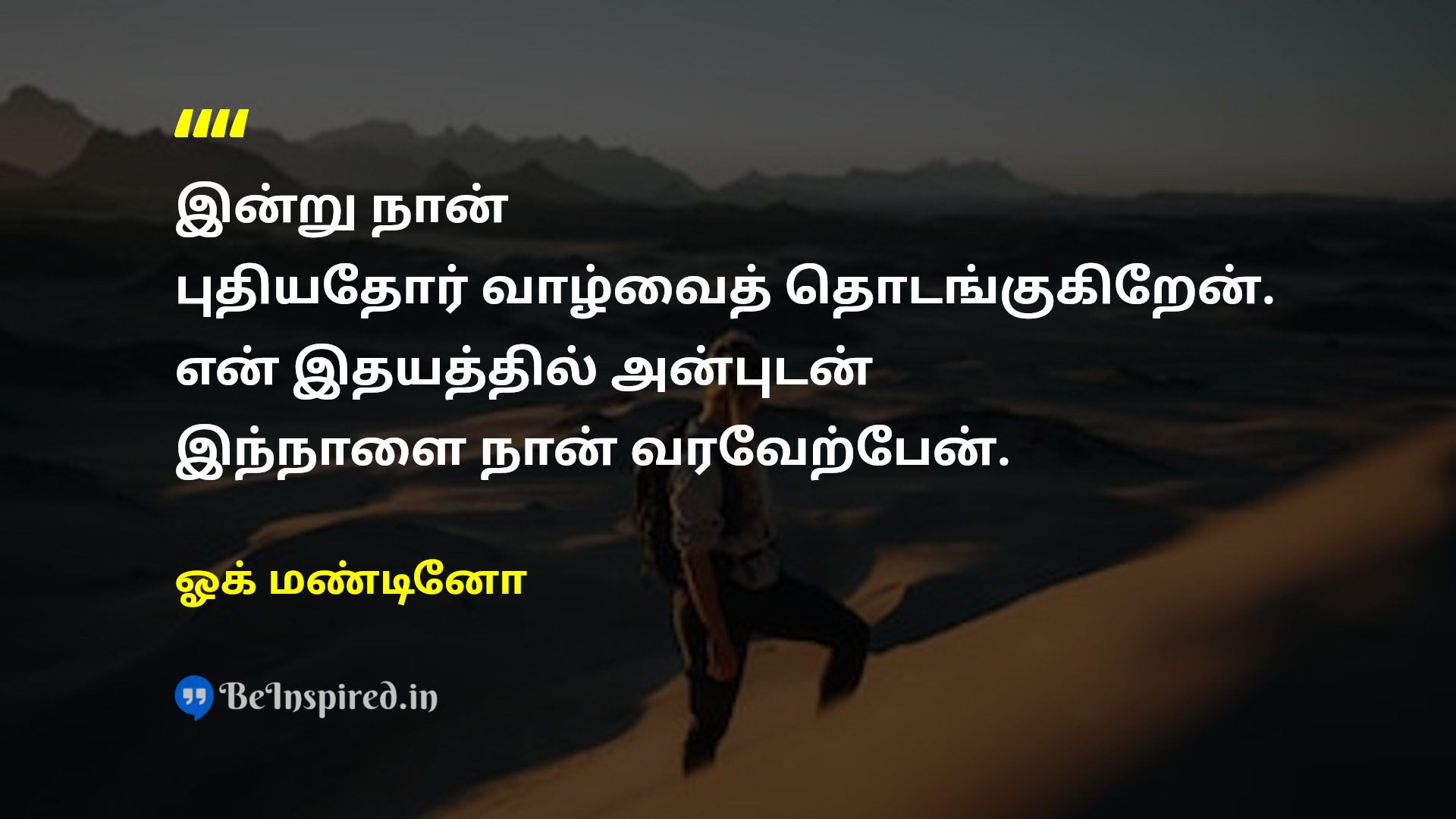 இன்று நான் புதியதோர் வாழ்வைத் தொடங்குகிறேன். என் இதயத்தில் அன்புடன் இந்நாளை நான் வரவேற்பேன்.