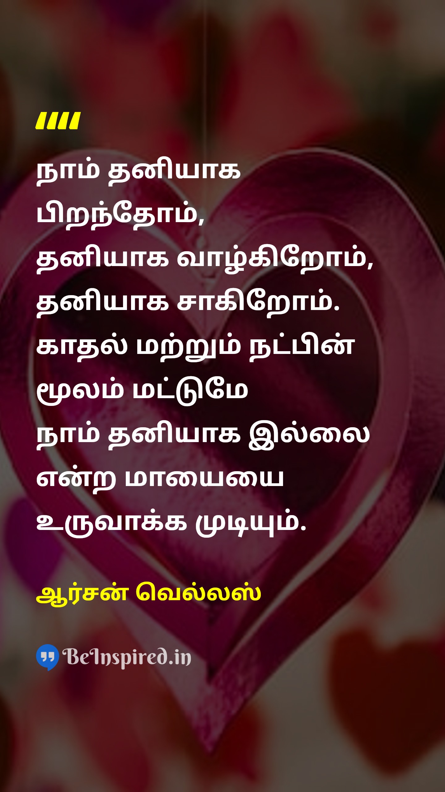 நாம் தனியாக பிறந்தோம், தனியாக வாழ்கிறோம், தனியாக சாகிறோம். காதல் மற்றும் நட்பின் மூலம் மட்டுமே நாம் தனியாக இல்லை என்ற மாயையை உருவாக்க முடியும்.
