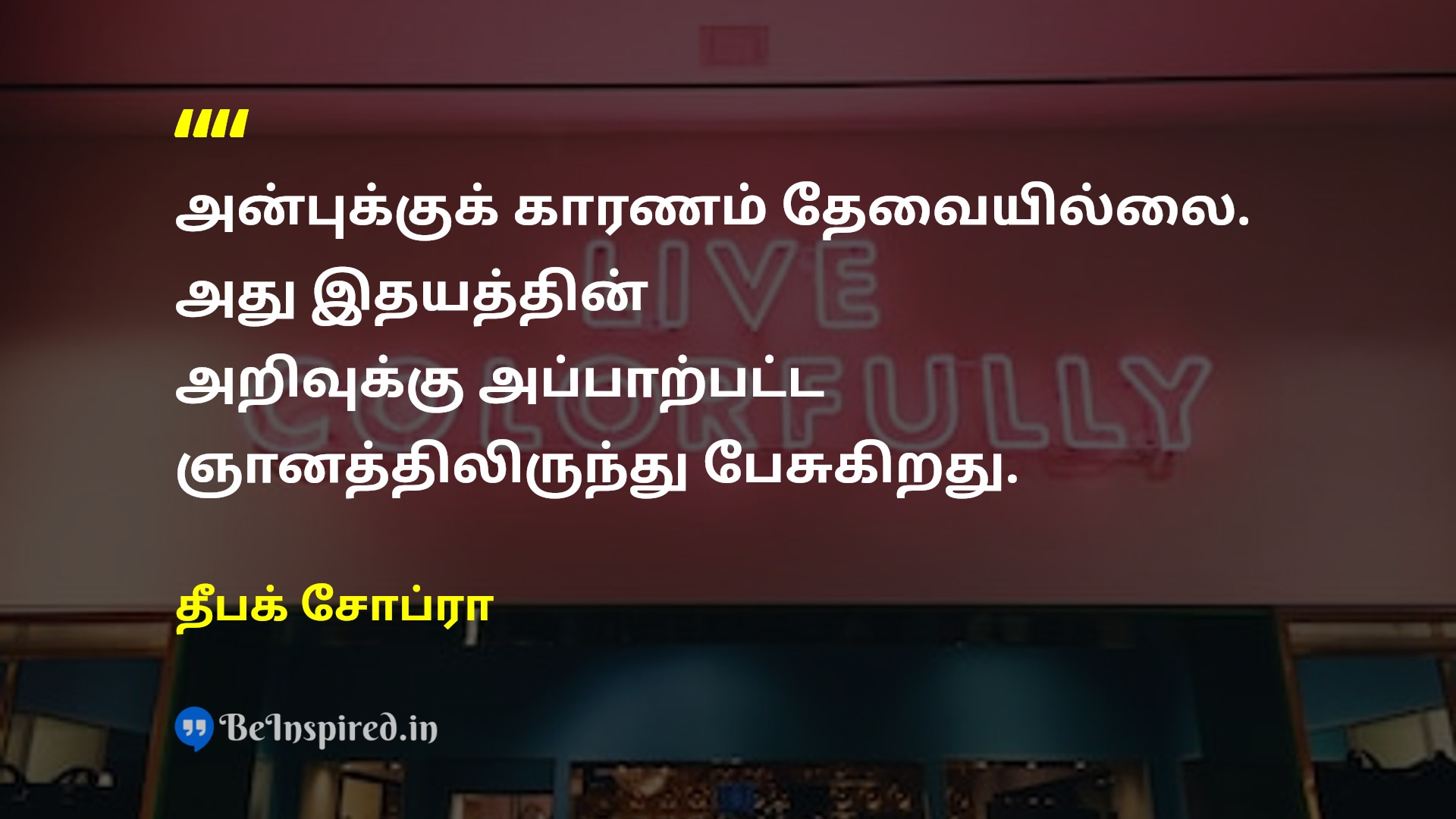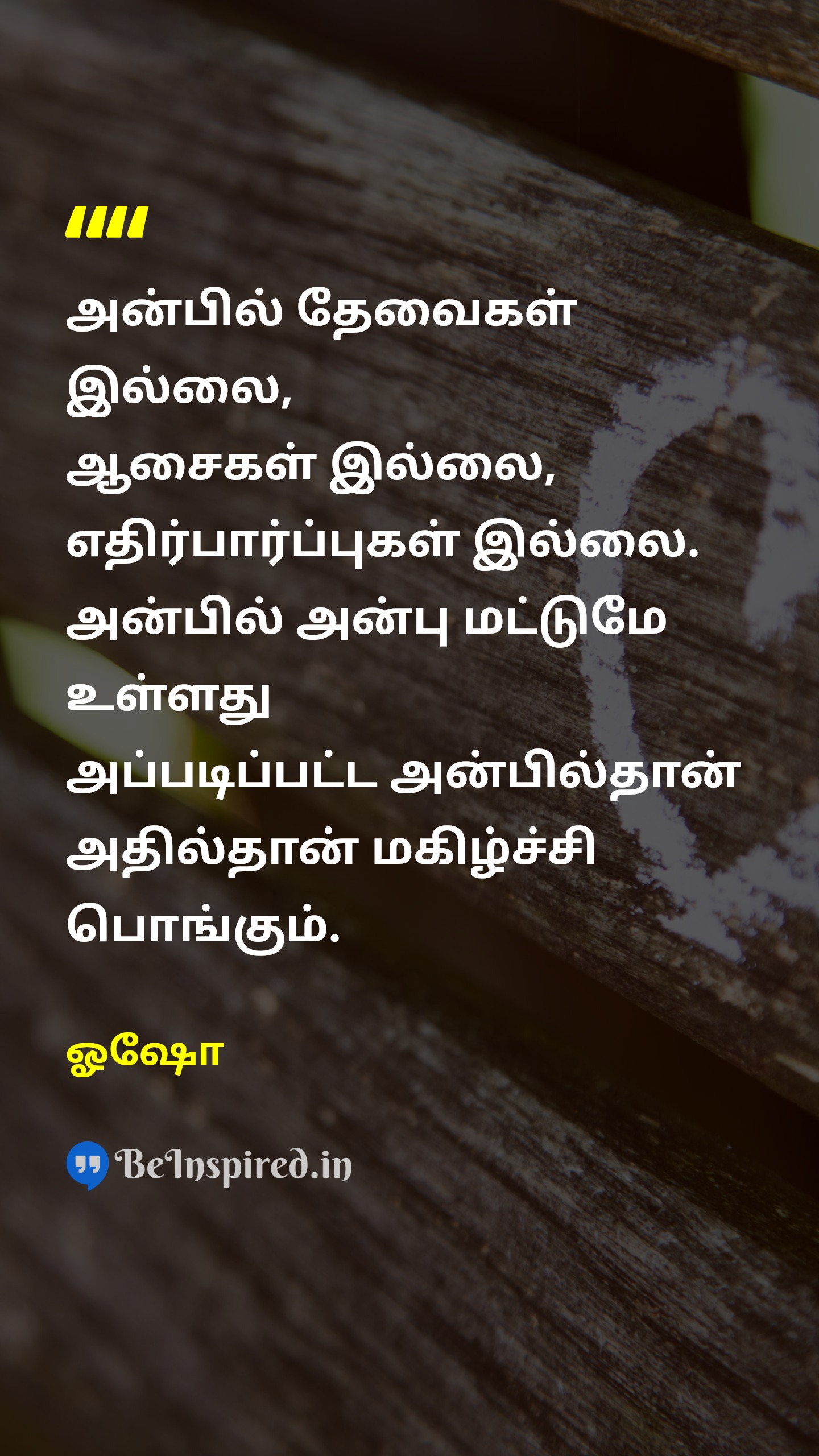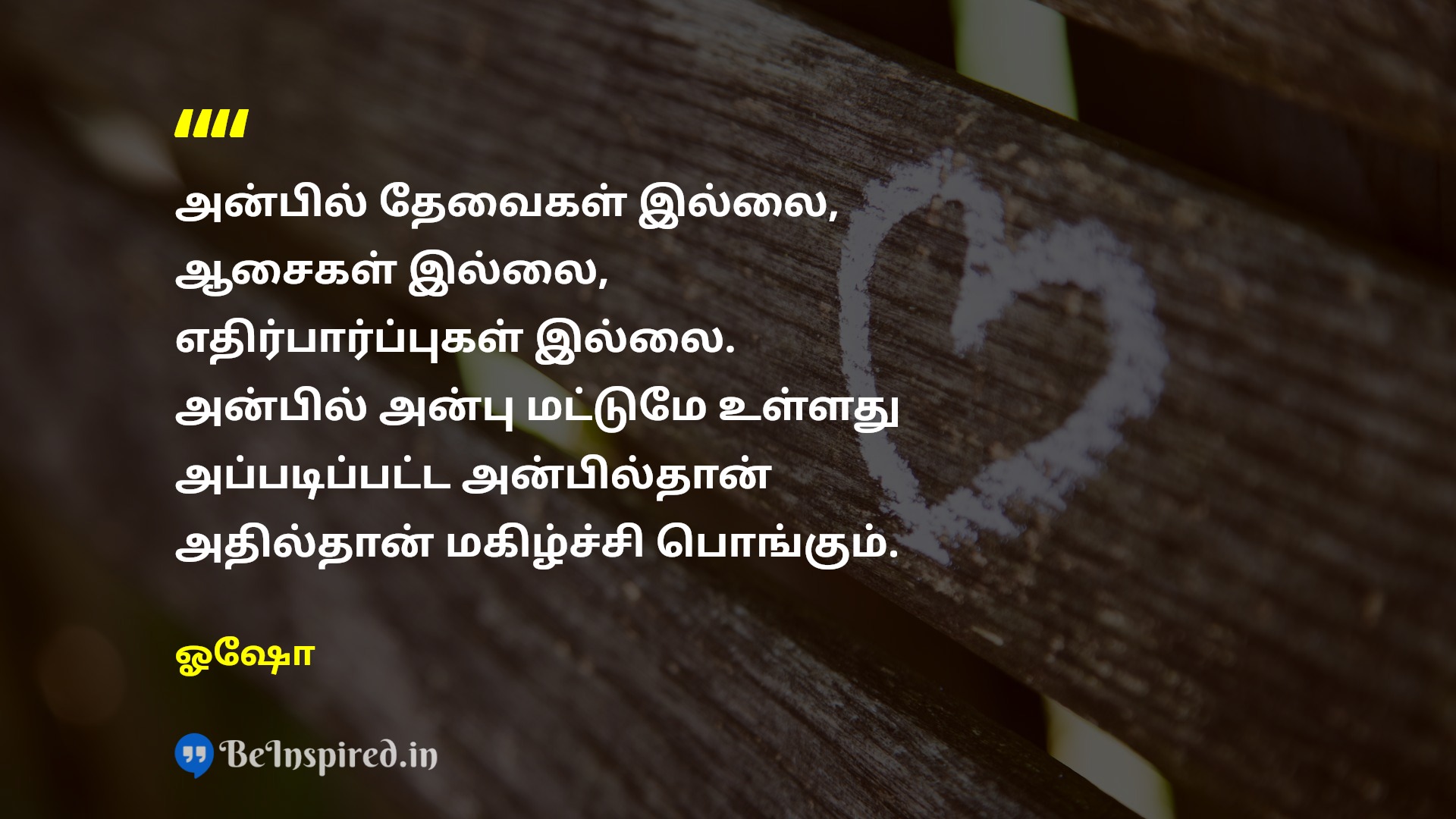 அன்பில் தேவைகள் இல்லை, ஆசைகள் இல்லை, எதிர்பார்ப்புகள் இல்லை. அன்பில் அன்பு மட்டுமே உள்ளது அப்படிப்பட்ட அன்பில்தான் அதில்தான் மகிழ்ச்சி பொங்கும்.