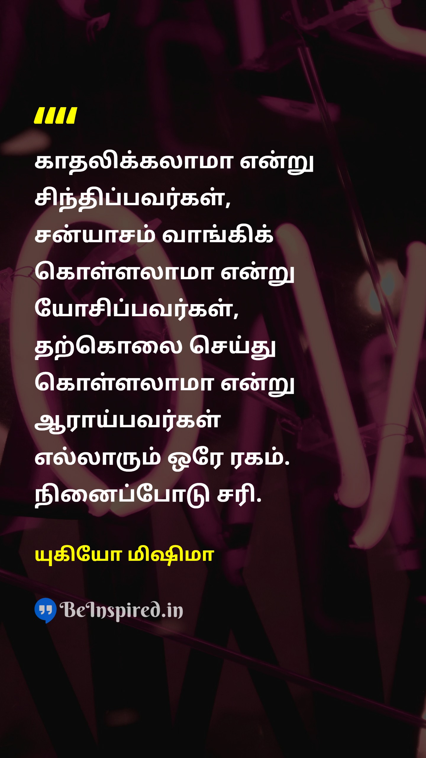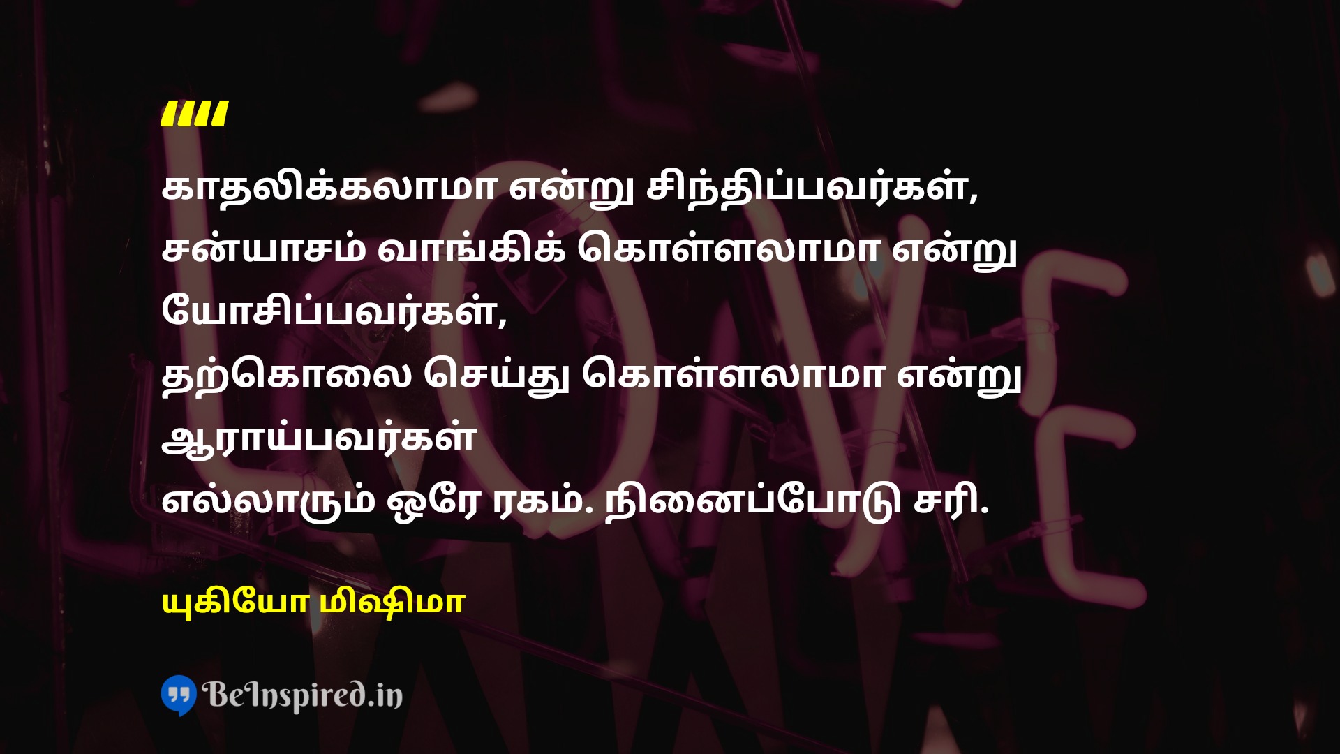 காதலிக்கலாமா என்று சிந்திப்பவர்கள், சன்யாசம் வாங்கிக் கொள்ளலாமா என்று யோசிப்பவர்கள், தற்கொலை செய்து கொள்ளலாமா என்று ஆராய்பவர்கள் எல்லாரும் ஒரே ரகம். நினைப்போடு சரி.