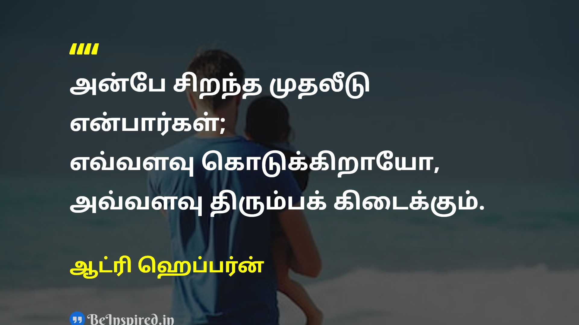 அன்பே சிறந்த முதலீடு என்பார்கள்; எவ்வளவு கொடுக்கிறாயோ, அவ்வளவு திரும்பக் கிடைக்கும்.