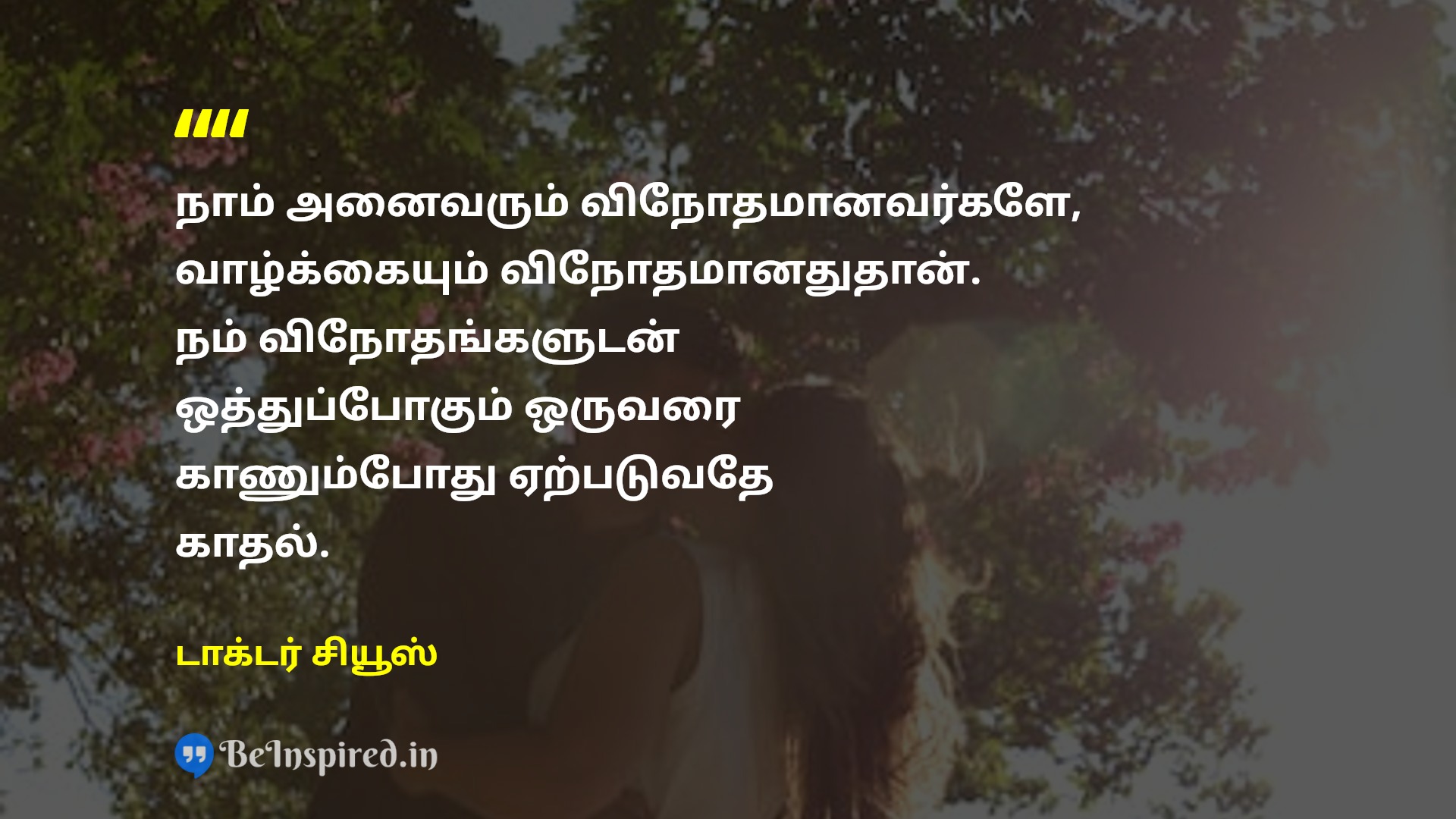 நாம் அனைவரும் விநோதமானவர்களே, வாழ்க்கையும் விநோதமானதுதான். நம் விநோதங்களுடன் ஒத்துப்போகும் ஒருவரை காணும்போது ஏற்படுவதே காதல்.