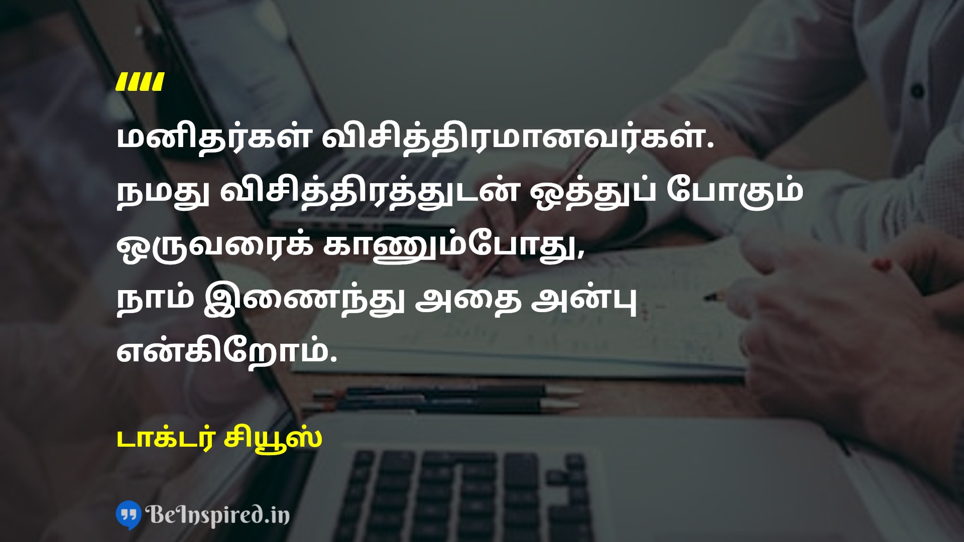 மனிதர்கள் விசித்திரமானவர்கள். நமது விசித்திரத்துடன் ஒத்துப் போகும் ஒருவரைக் காணும்போது, நாம் இணைந்து அதை அன்பு என்கிறோம்.