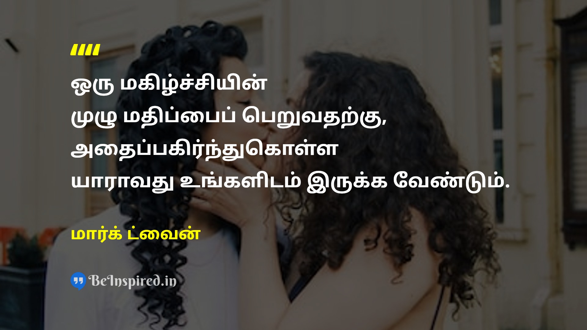 ஒரு மகிழ்ச்சியின் முழு மதிப்பைப் பெறுவதற்கு, அதைப்பகிர்ந்துகொள்ள யாராவது உங்களிடம் இருக்க வேண்டும்.