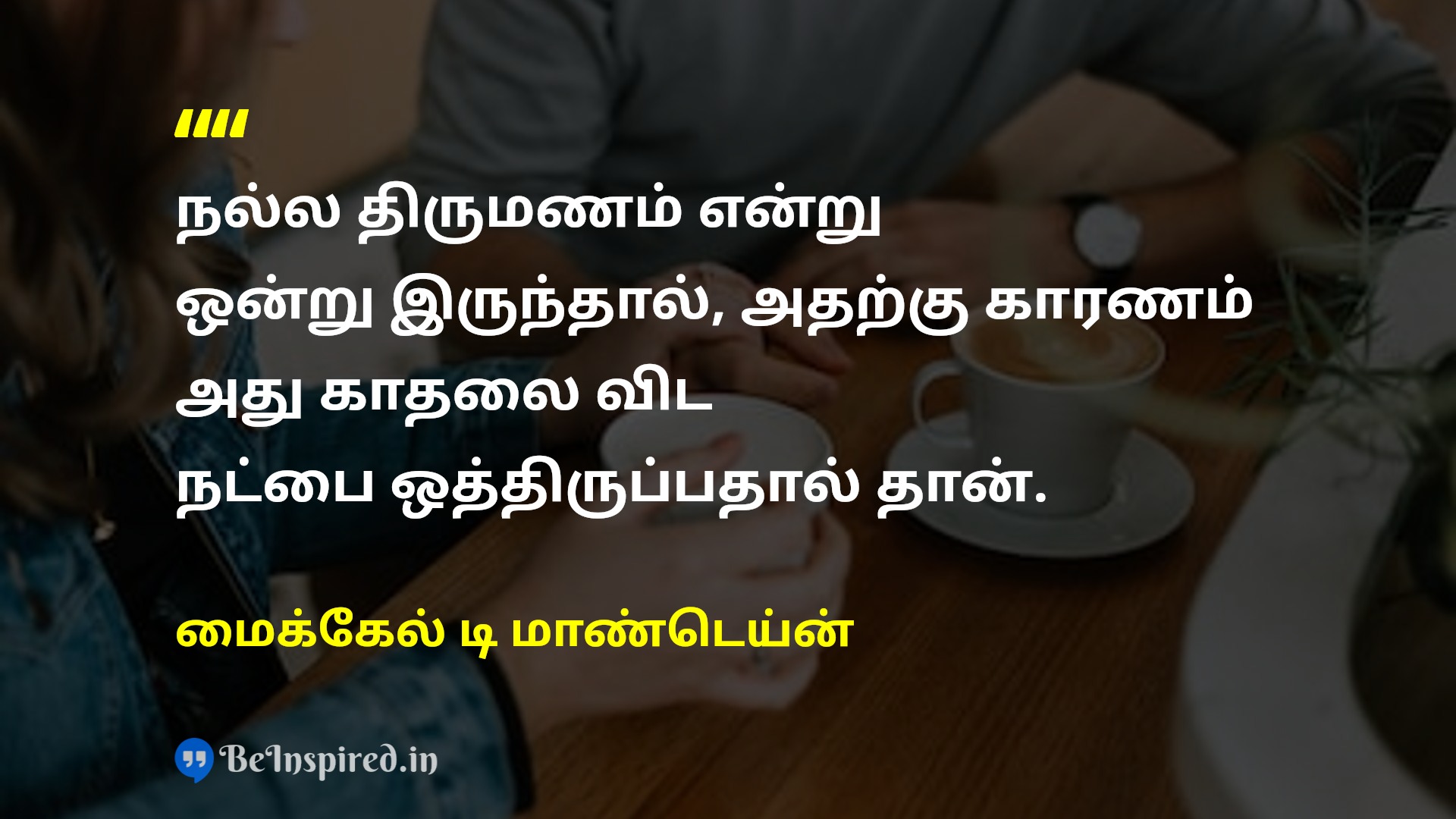 நல்ல திருமணம் என்று ஒன்று இருந்தால், அதற்கு காரணம் அது காதலை விட நட்பை ஒத்திருப்பதால் தான்.