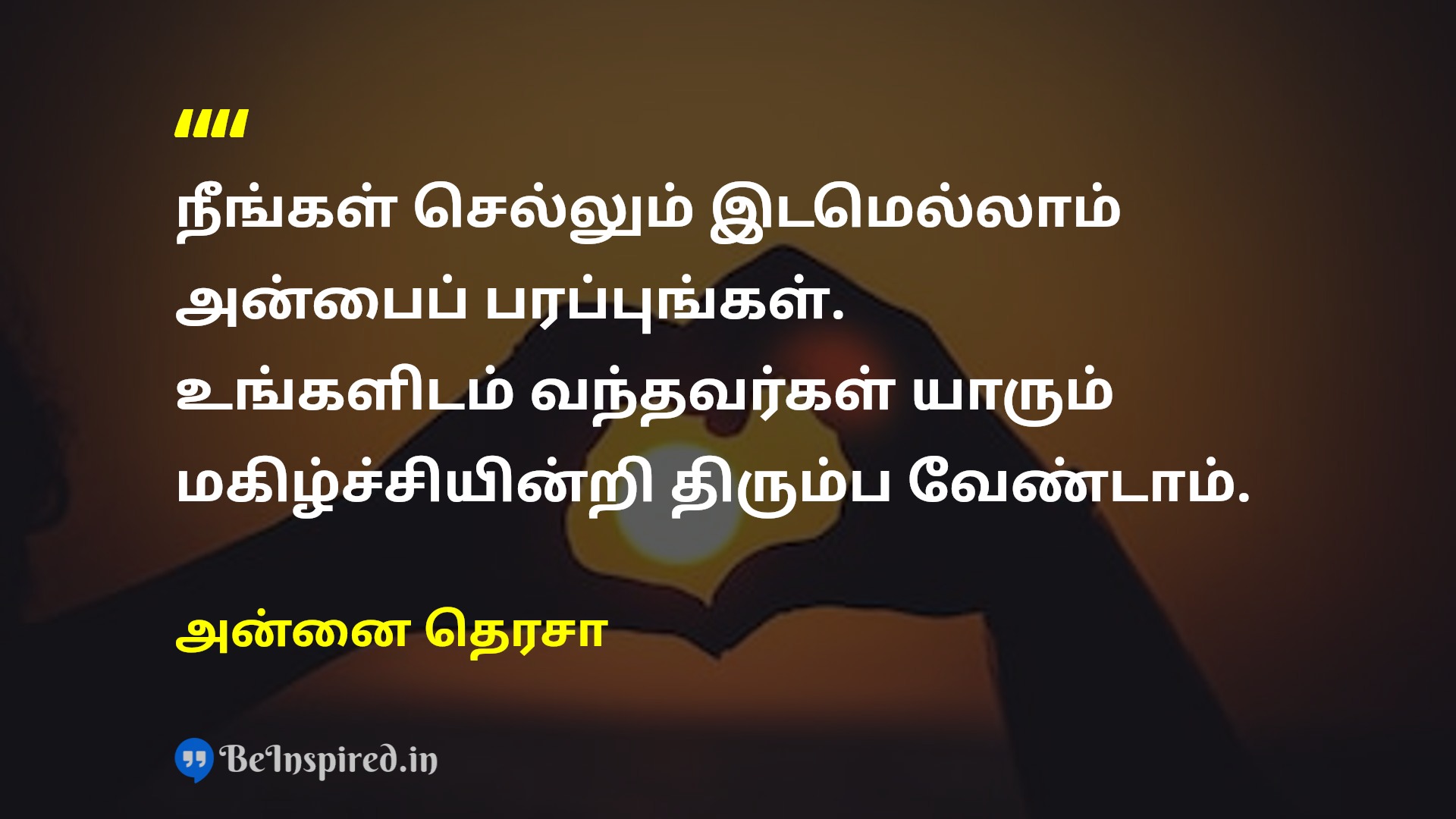 நீங்கள் செல்லும் இடமெல்லாம் அன்பைப் பரப்புங்கள். உங்களிடம் வந்தவர்கள் யாரும் மகிழ்ச்சியின்றி திரும்ப வேண்டாம்.