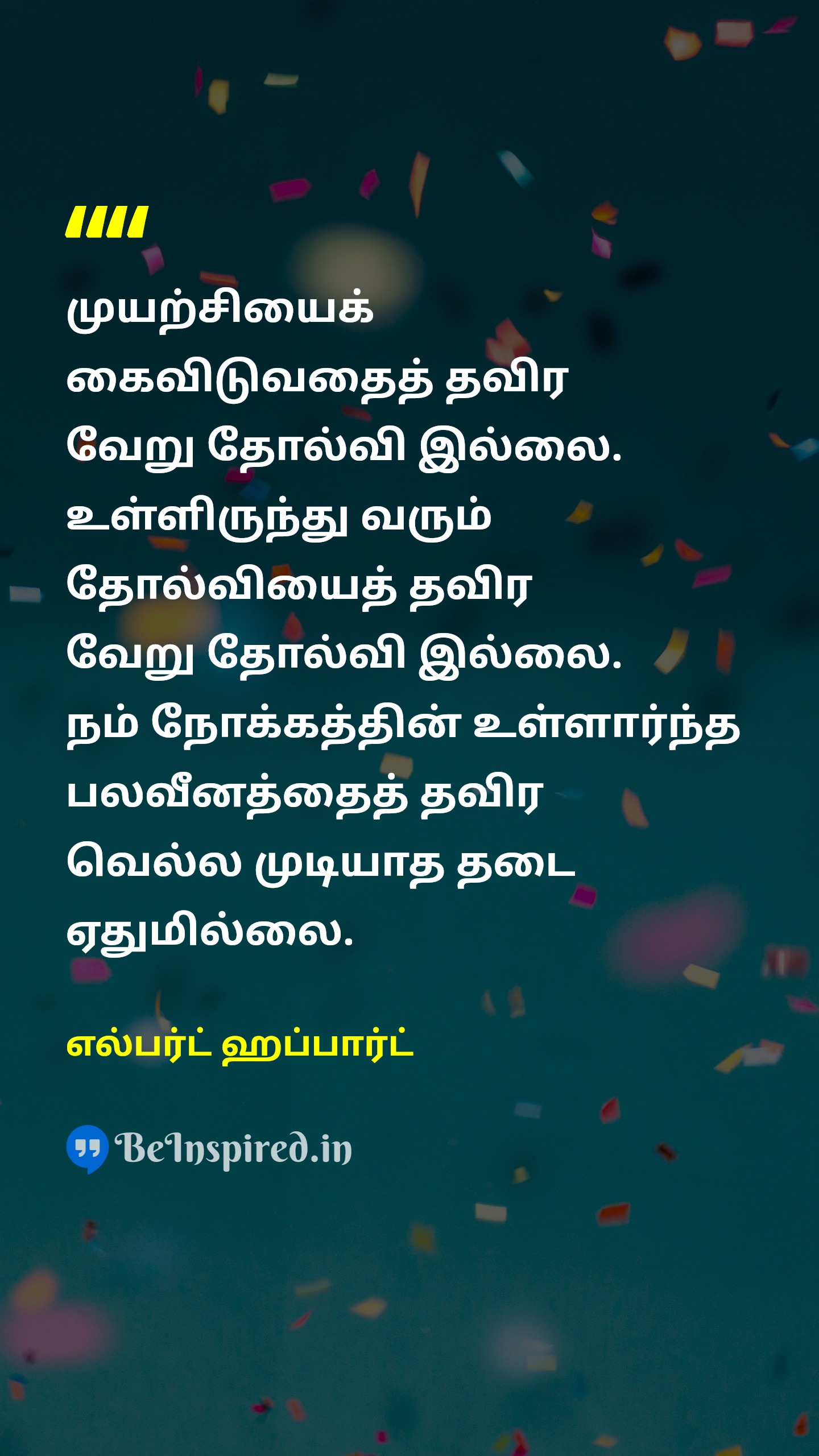 முயற்சியைக் கைவிடுவதைத் தவிர வேறு தோல்வி இல்லை. உள்ளிருந்து வரும் தோல்வியைத் தவிர வேறு தோல்வி இல்லை. நம் நோக்கத்தின் உள்ளார்ந்த பலவீனத்தைத் தவிர வெல்ல முடியாத தடை ஏதுமில்லை.