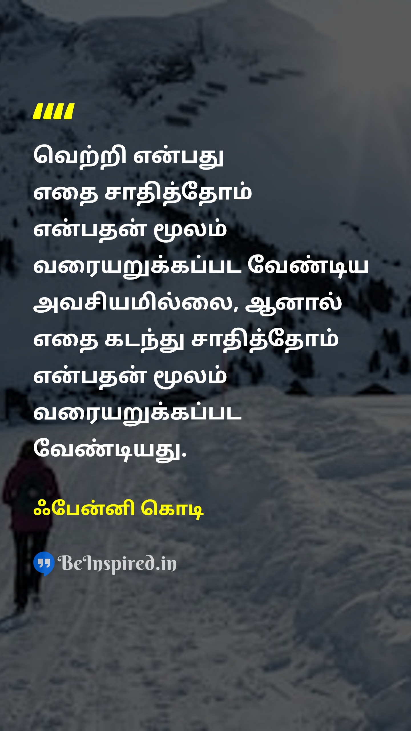 வெற்றி என்பது எதை சாதித்தோம் என்பதன் மூலம் வரையறுக்கப்பட வேண்டிய அவசியமில்லை, ஆனால் எதை கடந்து சாதித்தோம் என்பதன் மூலம் வரையறுக்கப்பட வேண்டியது.