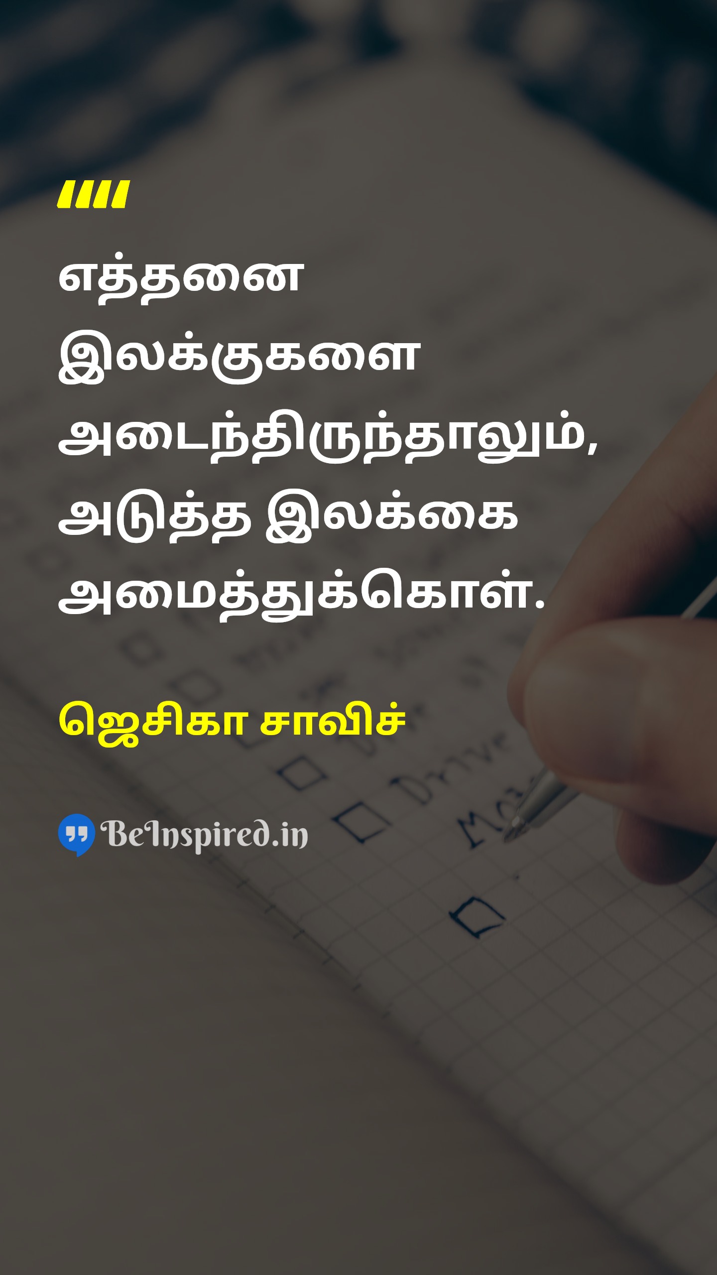 ஒவ்வொரு நாளும் உனது முக்கிய இலக்கை நோக்கிச் செல்ல ஏதாவது ஒன்று செய்.