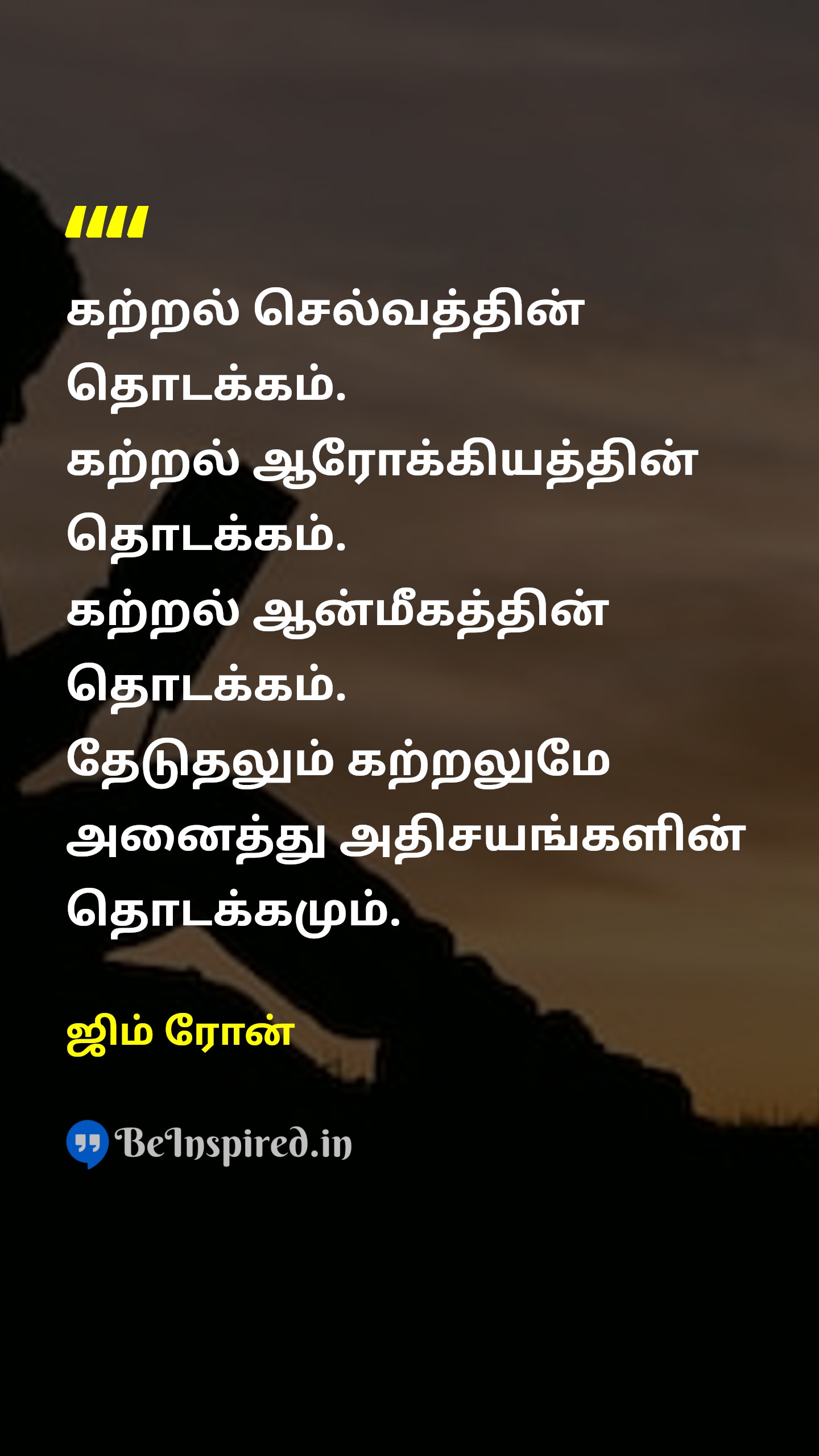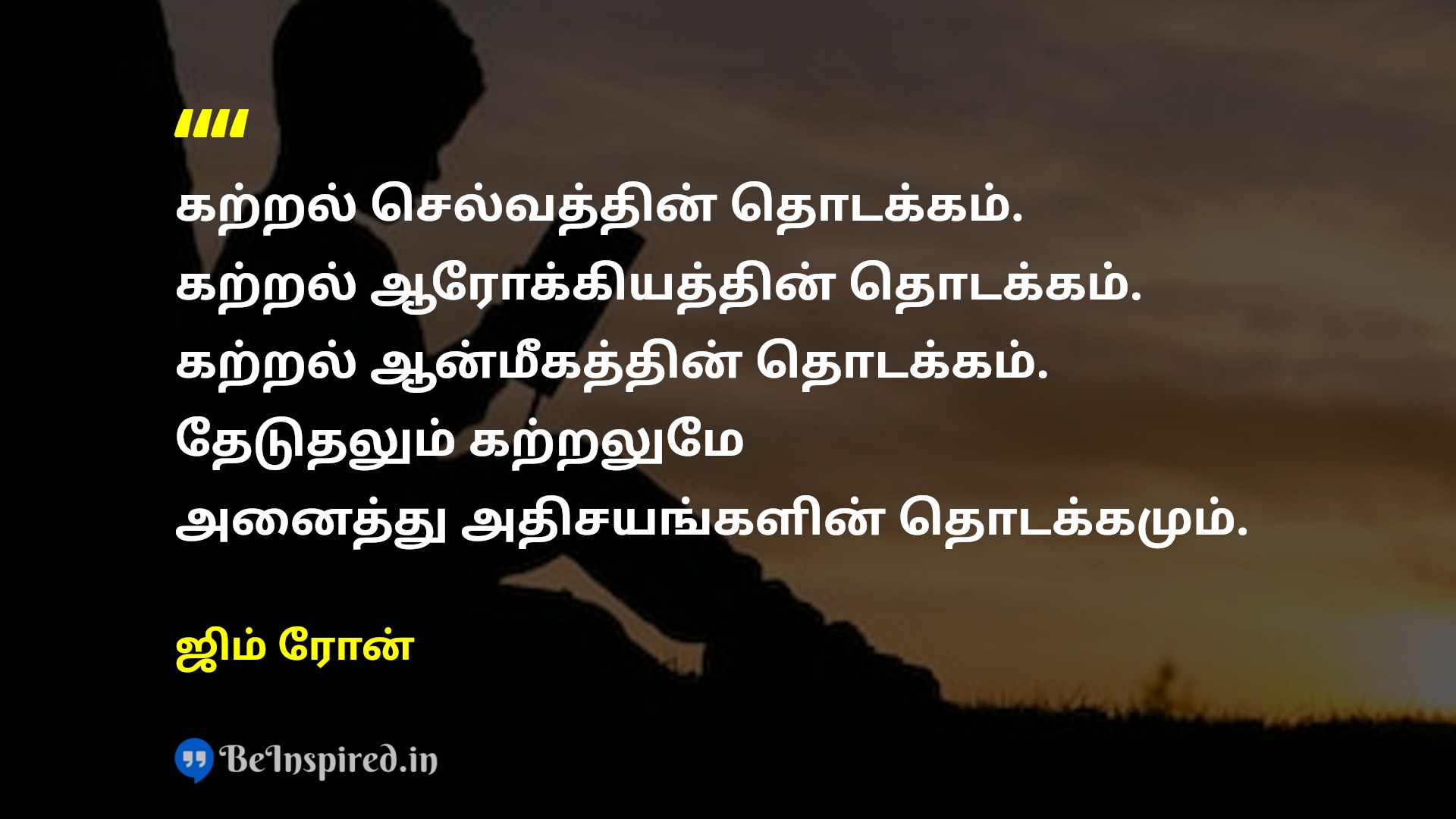 கற்றல் செல்வத்தின் தொடக்கம். கற்றல் ஆரோக்கியத்தின் தொடக்கம். கற்றல் ஆன்மீகத்தின் தொடக்கம். தேடுதலும் கற்றலுமே அனைத்து அதிசயங்களின் தொடக்கமும்.