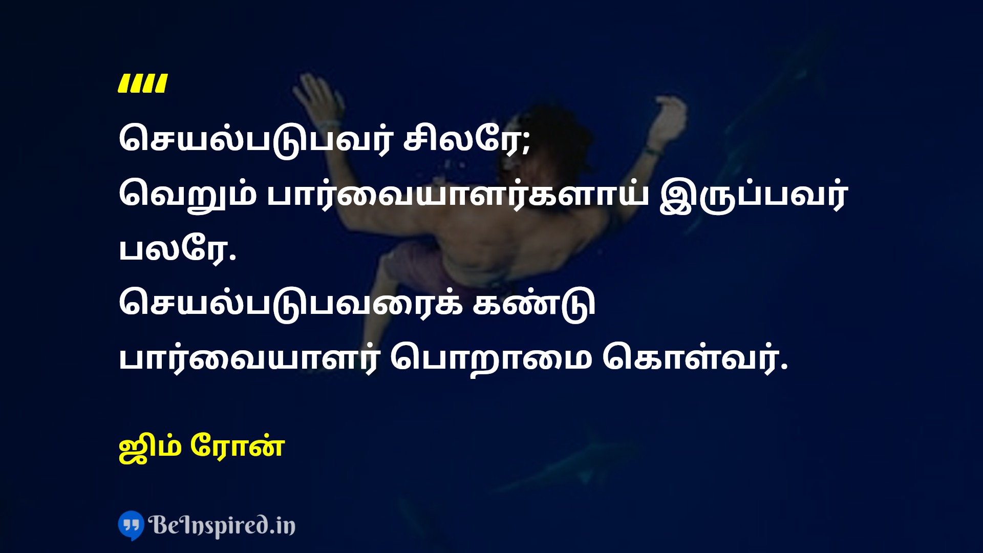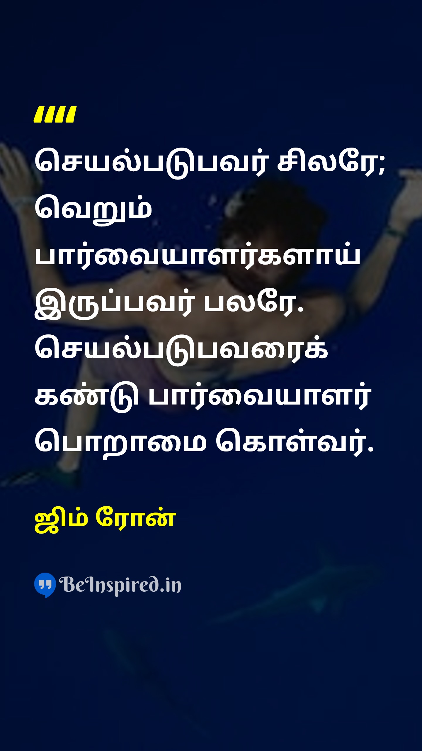 செயல்படுபவர் சிலரே; வெறும் பார்வையாளர்களாய் இருப்பவர் பலரே. செயல்படுபவரைக் கண்டு பார்வையாளர் பொறாமை கொள்வர்.