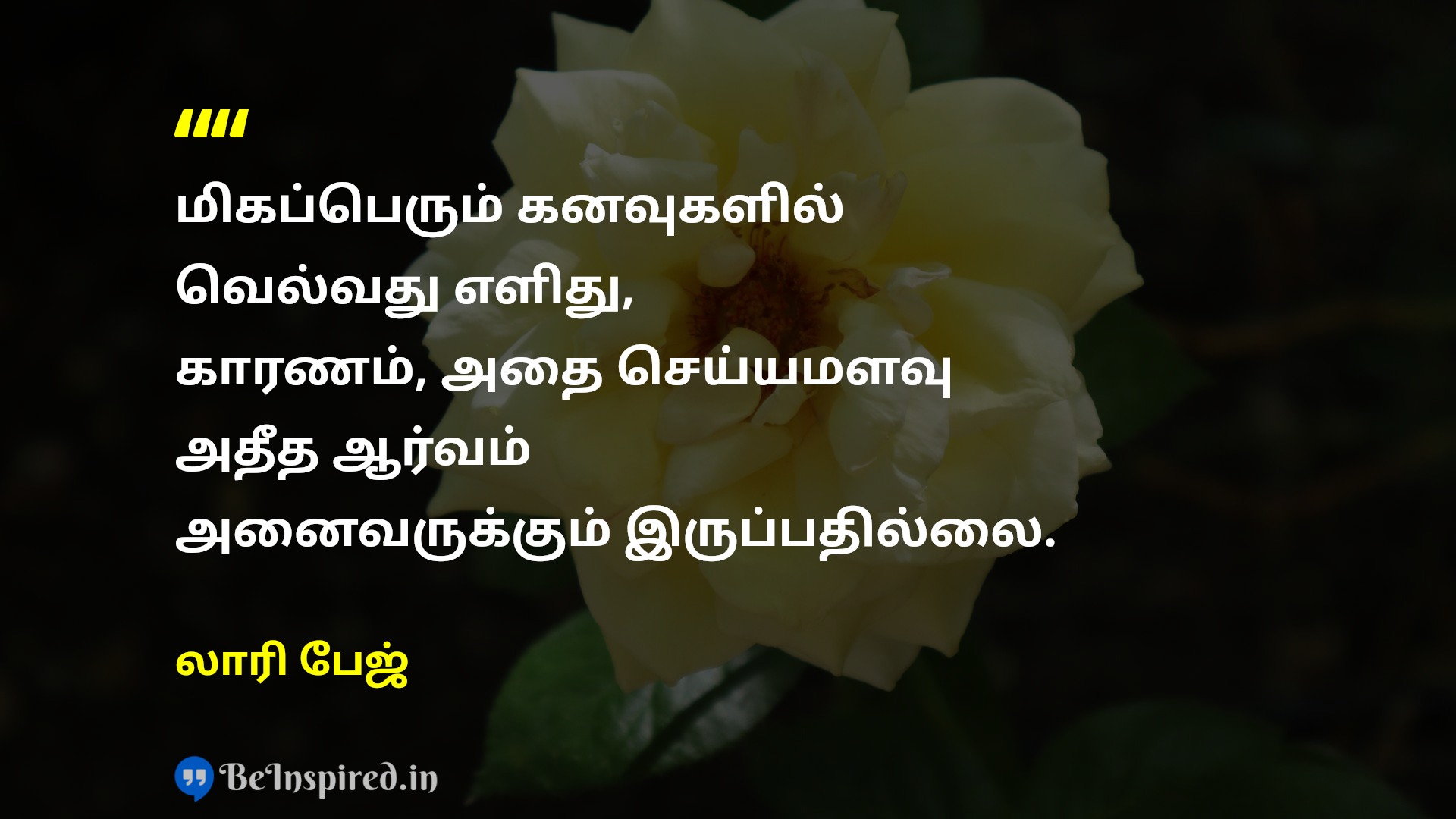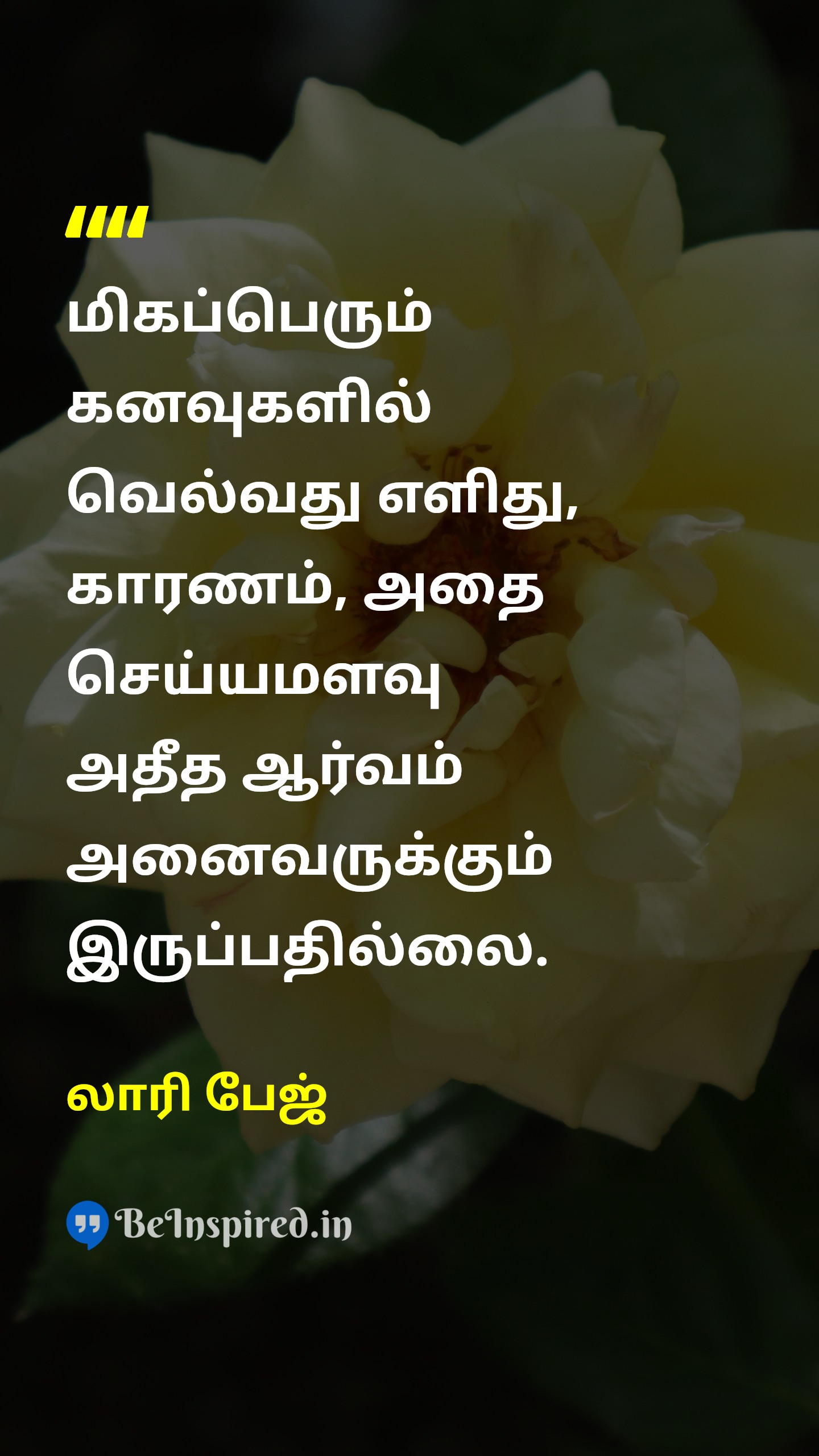 மிகப்பெரும் கனவுகளில் வெல்வது எளிது, காரணம், அதை செய்யமளவு அதீத ஆர்வம் அனைவருக்கும் இருப்பதில்லை.