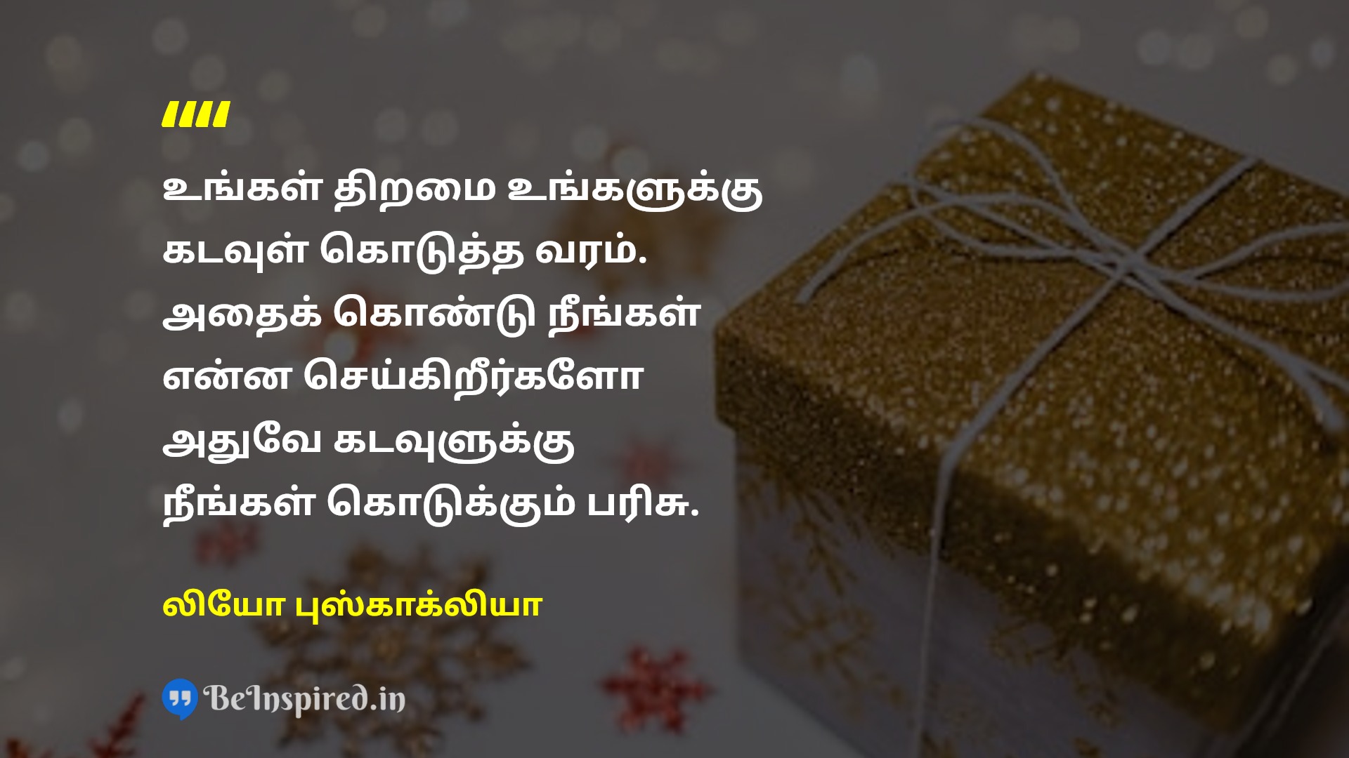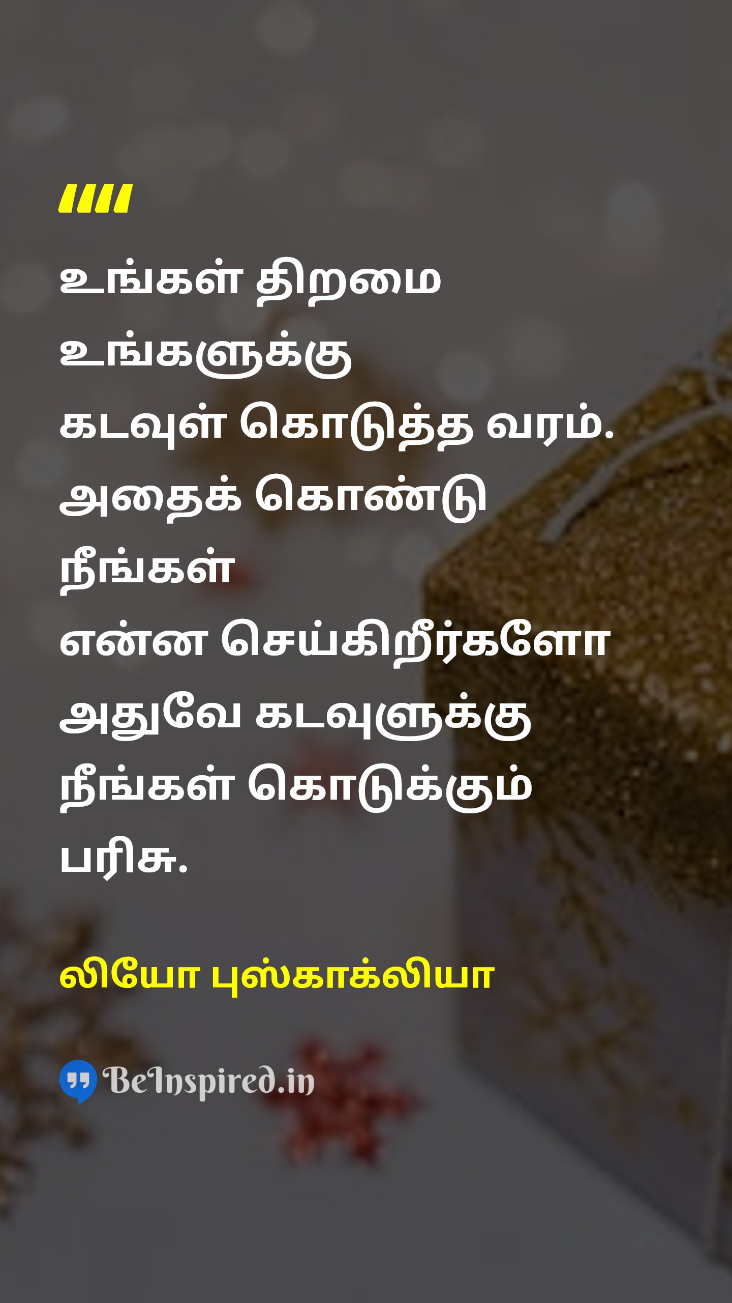 உங்கள் திறமை உங்களுக்கு கடவுள் கொடுத்த வரம். அதைக் கொண்டு நீங்கள் என்ன செய்கிறீர்களோ அதுவே கடவுளுக்கு நீங்கள் கொடுக்கும் பரிசு.